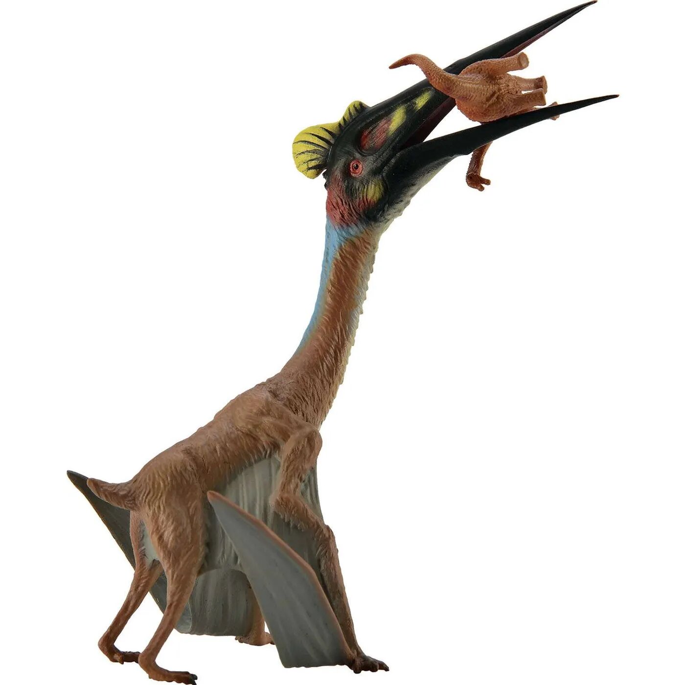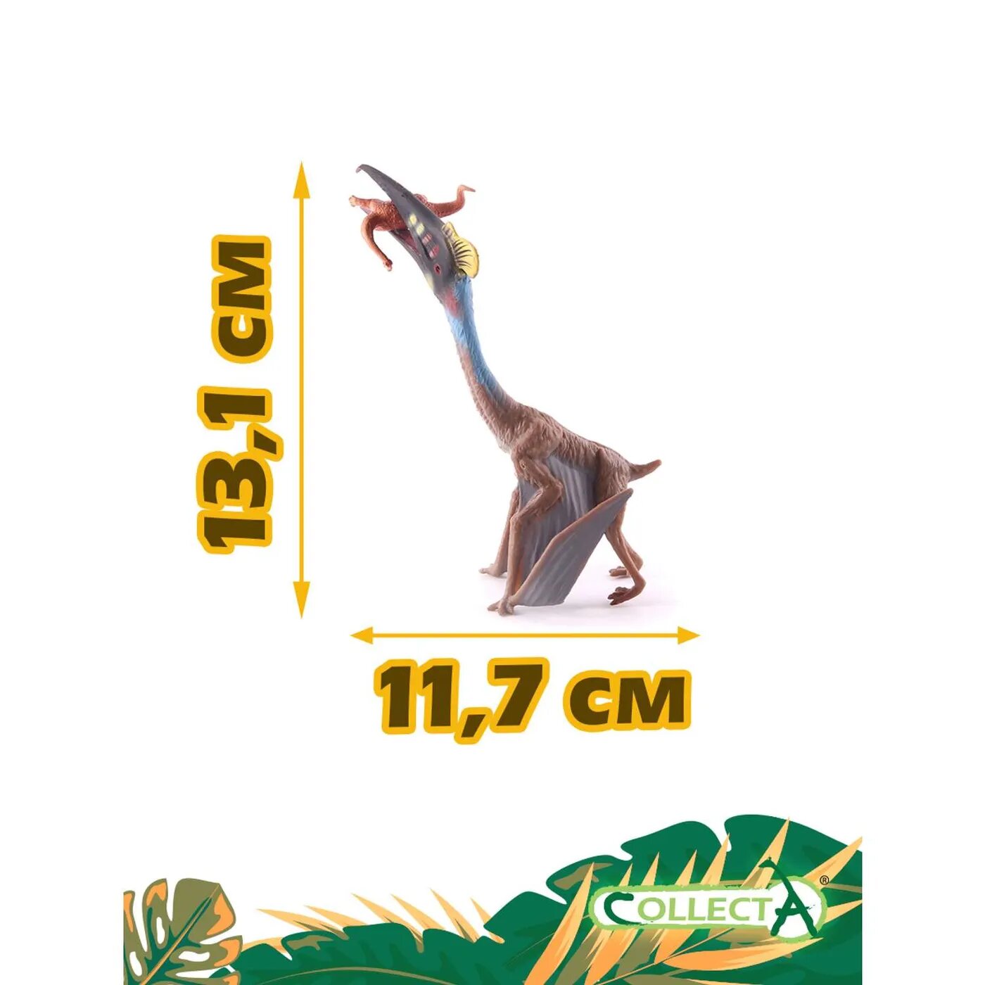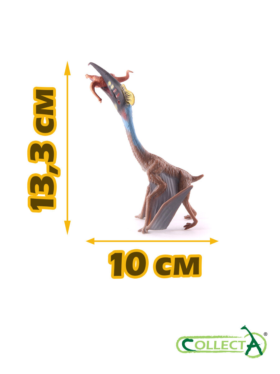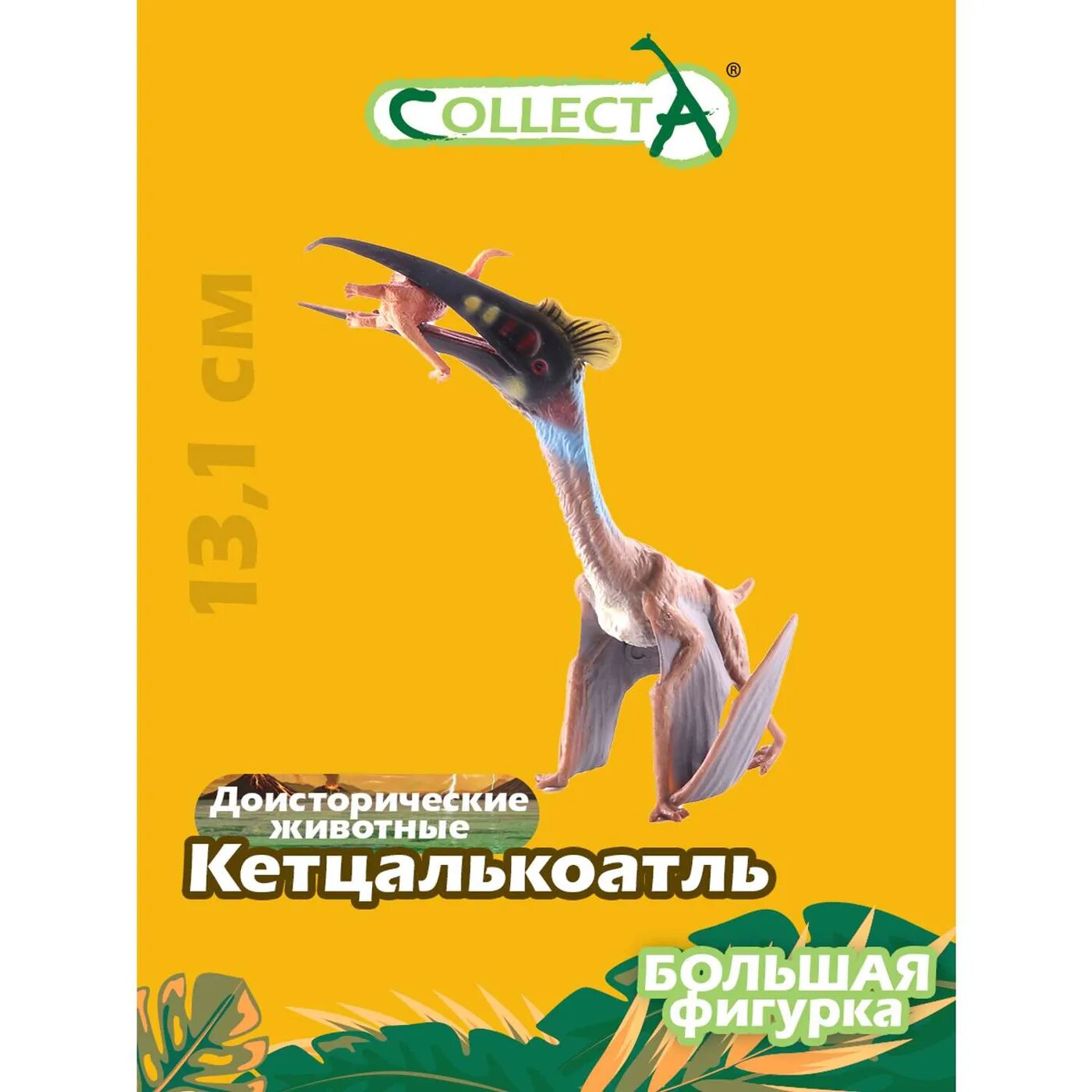 Коллекционная фигурка Кетцалькоатль с добычей представляет собой уменьшенную копию крупнейшего известного птерозавра, стоящего на земле и держащего в клюве свой будущий обед. Фигурка изготовлена с высокой степенью достоверности и тщательно детализирована. Летающий ящер окрашен в цвета, которые, как считают ученые, имел настоящий доисторический зверь.