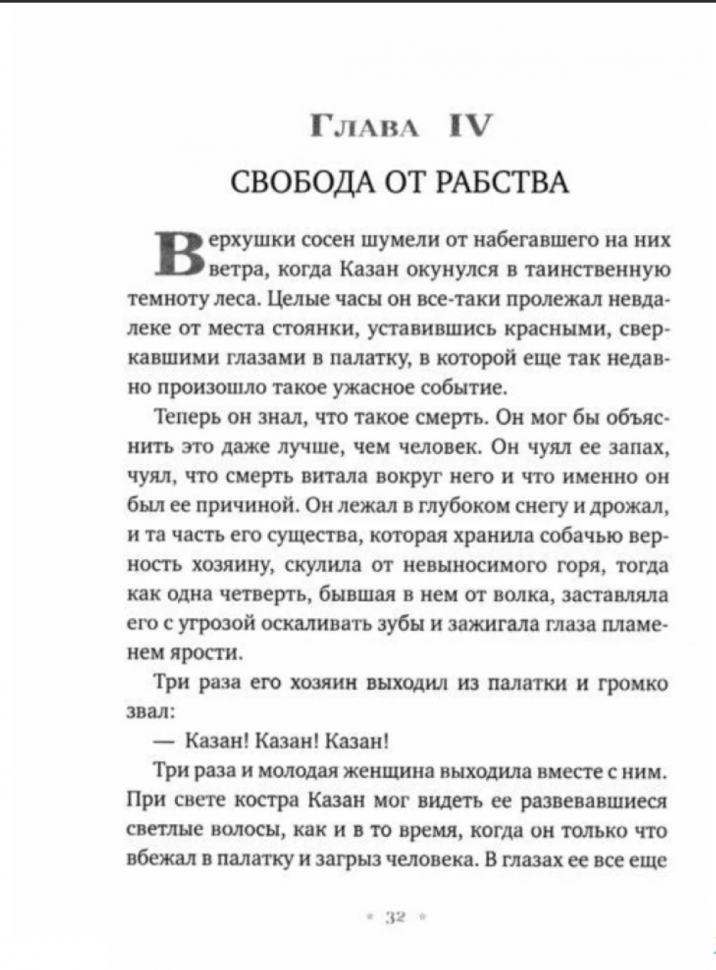 Потрясающе интересная история для взрослых и детей! Автор великолепно описывает природу, животных, передает дух времен "золотой лихорадки". Всю повесть переживала о полуволке, полусобаке - Казане. Как самоотверженно он боролся за жизнь свою и своей спутницы - Серой Волчицы. Это книга о добре и справедливости, о любви и дружбе, о верности и предательстве. Перечитываю уже в третий раз и думаю, что не в последний!