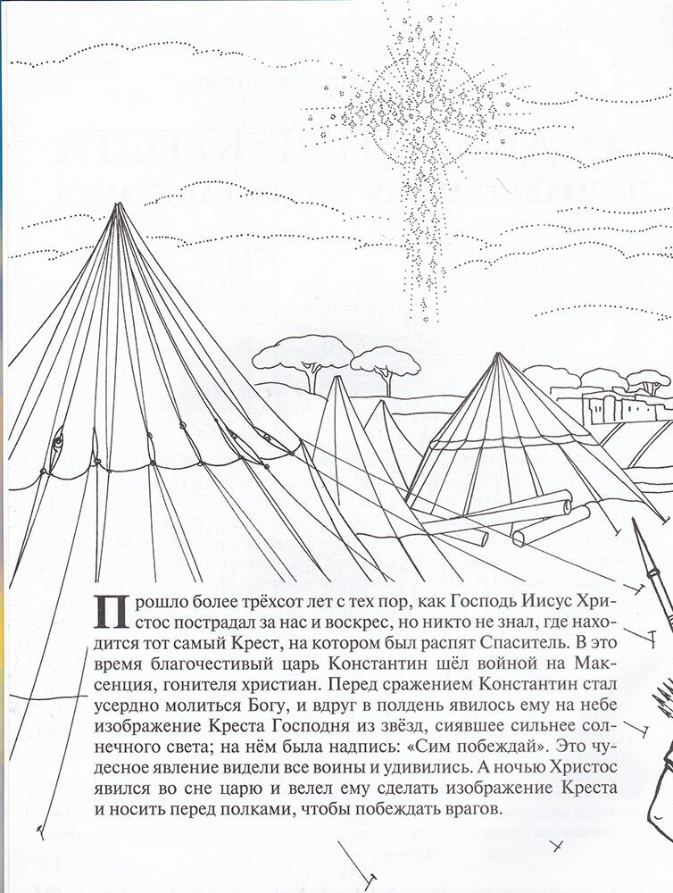 Новая книга из серии познавательных книг-раскрасок, рассказывает о двунадесятом празднике Воздвижения Креста Господня, который Церковь отмечает 27 сентября (14 сентября по церковному календарю). Текст разделен на восемь эпизодов, к каждому из которых дана иллюстрация для раскрашивания. Это поможет детям лучше запомнить детали повествования и легче усвоить рассказ. Также в книге-раскраске предложено два творческих задания.