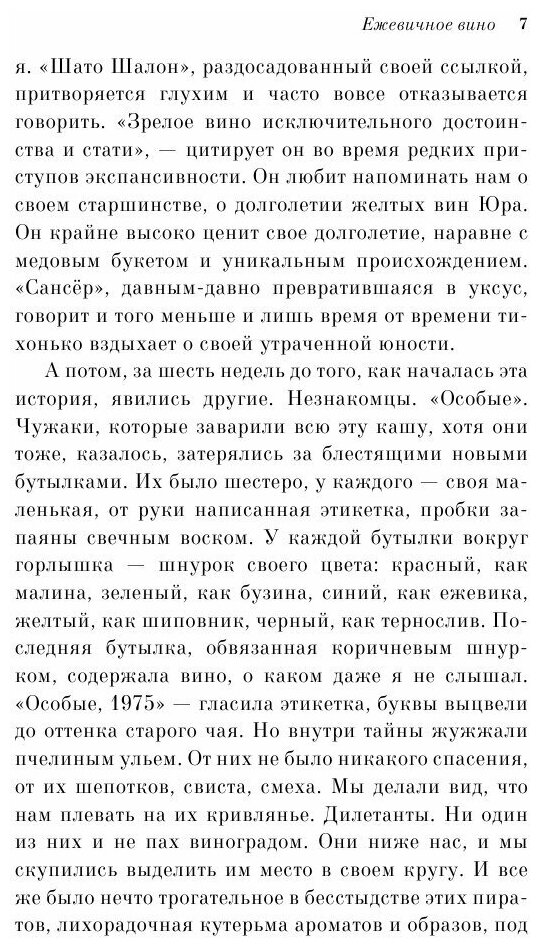 Это потрясающий роман. Произведение, которое согреет и немного развяжет язык, как главный персонаж, от лица которого идёт повествование - ежевичное вино. Эта книга определенно придется по душе тем, кому пришелся по вкусу "Шоколад" Джоанн Харрис. Особая атмосфера книги позволяет уйти с головой в повествование и проникнуться героями. Чувство волшебства - тонкое, едва заметное - то что надо для романа, чтобы сделать его запоминающимся, но не превратить в слащавую сказочку.