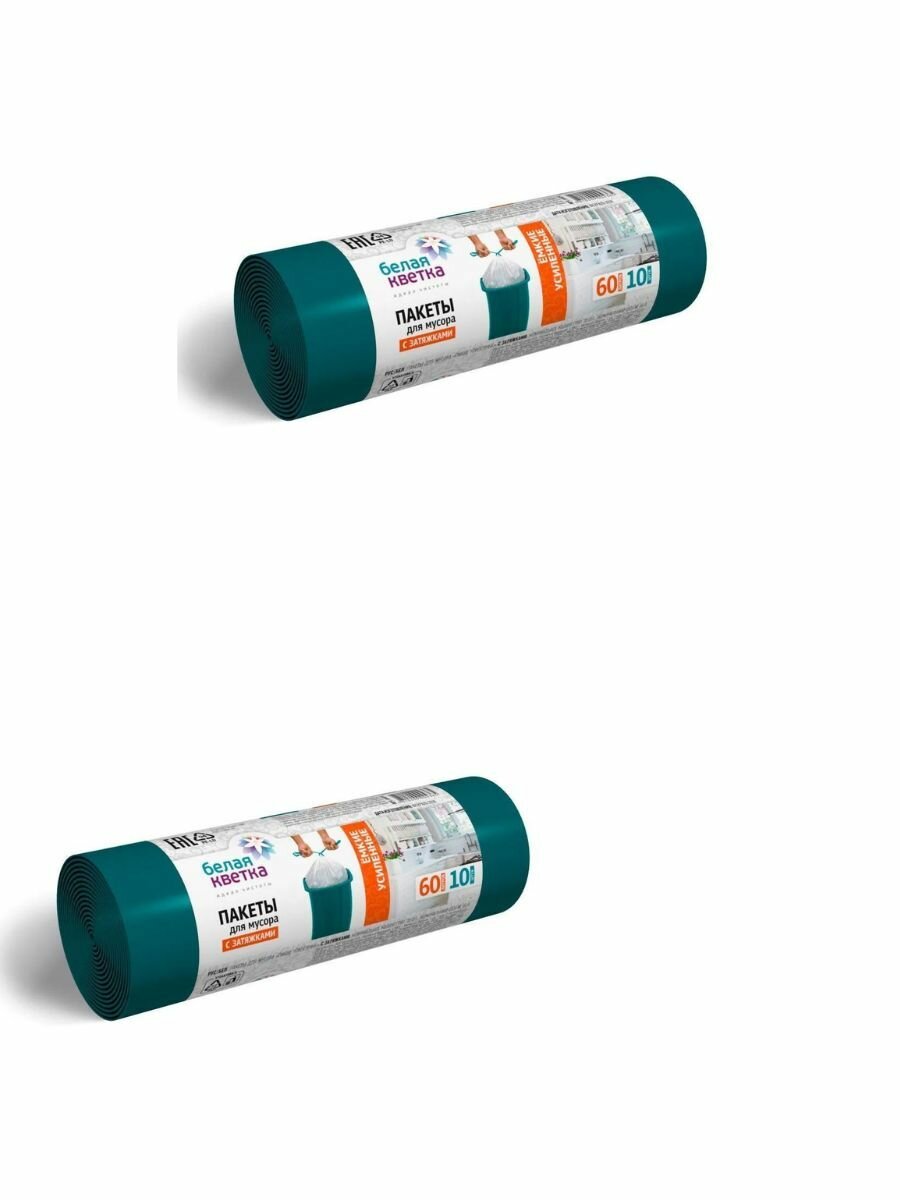 Мешки для мусора Белая кветка Ёмкие усиленные 60 л 10 шт