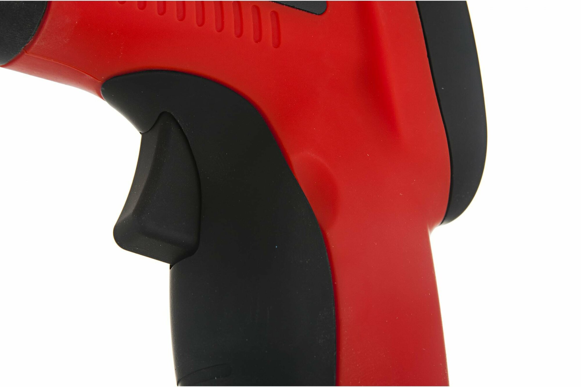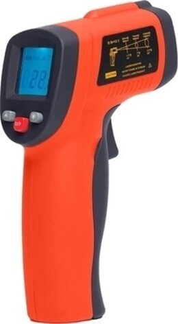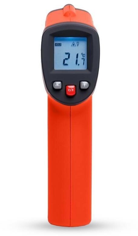 Инструмент измеряет температуру в диапазоне −50-550°С с точностью 1,5°С. Лазерный прицел и оптическое разрешение 12:1 позволяют произвести замеры на удалении. Экран со светодиодной подсветкой обеспечивает хорошую видимость результата при недостаточном освещении. Рукоятка с рифленой поверхностью и плавный механизм нажатия на курок делают работу комфортной.