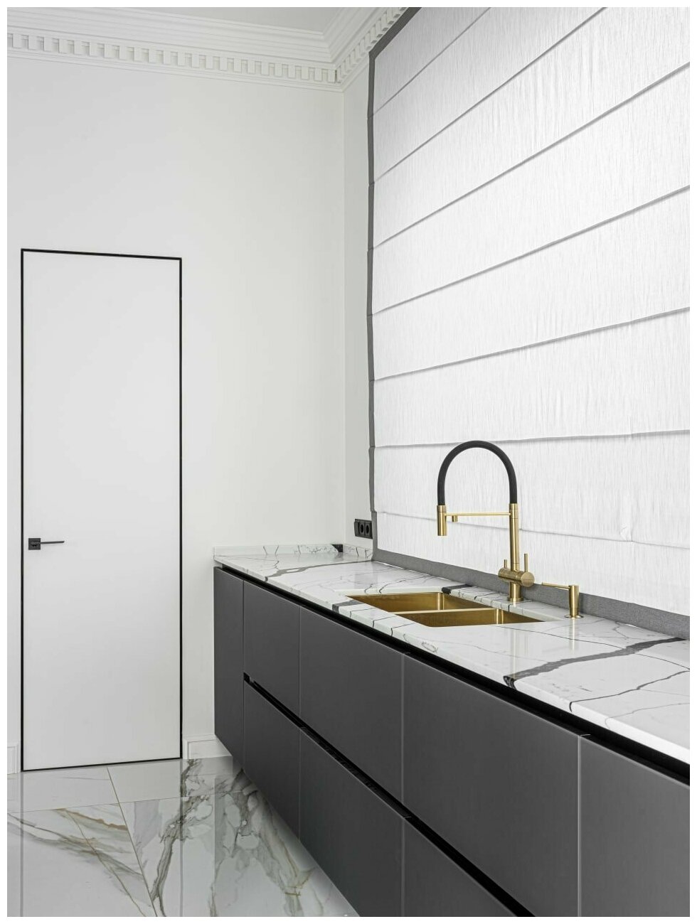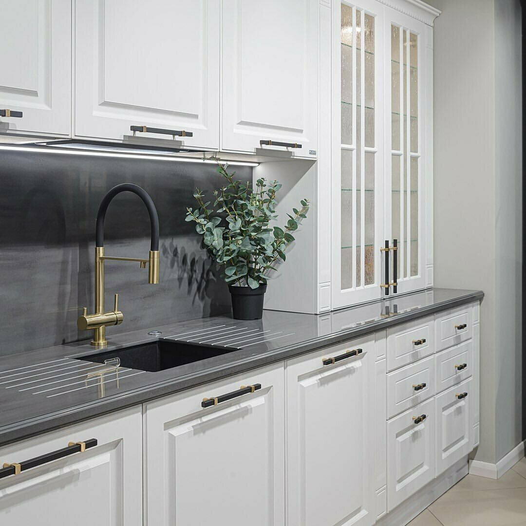 Хорошо сочетается как с классическим дизайном кухни, так и хайтек.