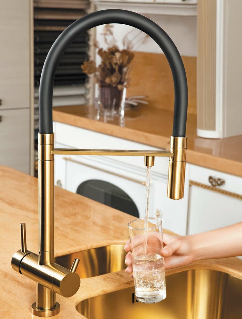 Удобно совмещает функции простого смесителя с краном для фильтрованной воды.
