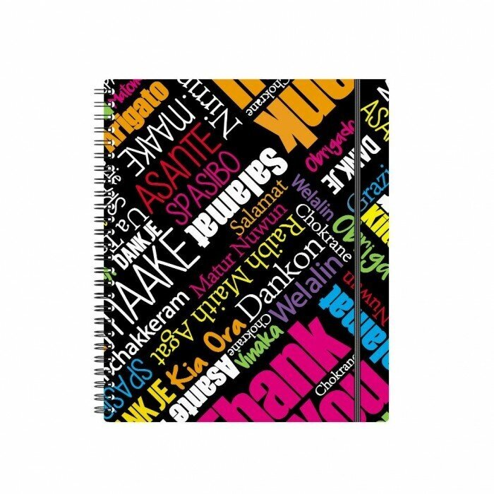 Тетрадь общая формата А5+ (170х205 мм). Обложка из высококачественного износостойкого матового пластика с фактурой «песок». Эффектный молодежный дизайн выполнен офсетной печатью яркими красками. В блоке 80 листов в клетку. Бумага офсетная плотностью 55 г/м2. Цвет линовки - синий. Скругленные уголки обложки. Обложка фиксируется прочной эластичной резинкой. Тип скрепления - спираль.