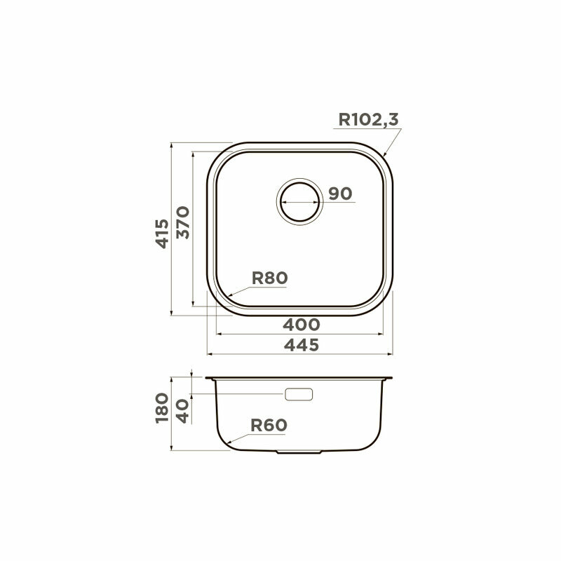 Японская высококачественная хромоникелевая нержавеющая сталь с покрытием PVD. Толщина металла 0,8 мм. Полировка, устойчивая к появлению царапин. Корпус мойки обработан специальным шумоподавляющим составом. Размер монтажной тумбы при подстольном монтаже 50 см. Угловой радиус врезки: 80 мм.