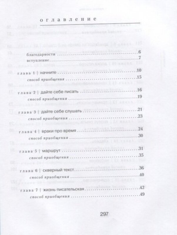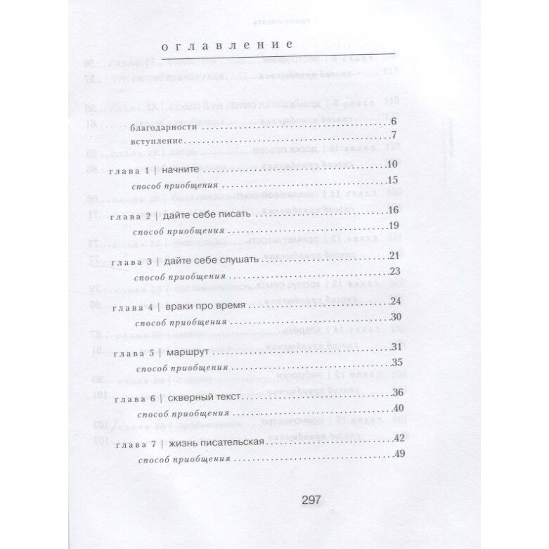 Признаться честно, я немного боялась, что книга станет клоном "Пути" или "Жилы", и увидев первое знакомое по предыдущим творениям Джулии, упражнение, зажмурилась, испугавшись что мои опасения подтвердились, но нет, она снова сделала ЭТО! 26 приковывающих внимание глав, уникальные, простые упражнения и ваш индивидуальный график приобщения к писательству.