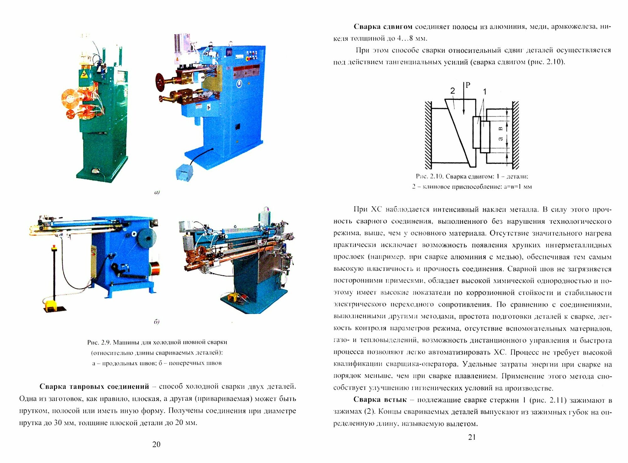 Описаны разновидности процессов сварки давлением (холодная сварка, сварка взрывом, магнитно-импульсная, ультразвуковая, индукционная, диффузионная, сварка трением), плавлением (плавящимся и неплавящимся электродами в различных защитных средах и под флюсом), концентрированными источниками энергии (лазерная и электронно-лучевая), а также сварка пластмасс. Указаны особенности применения процессов сварки в различных отраслях производства, описано необходимое оборудование.