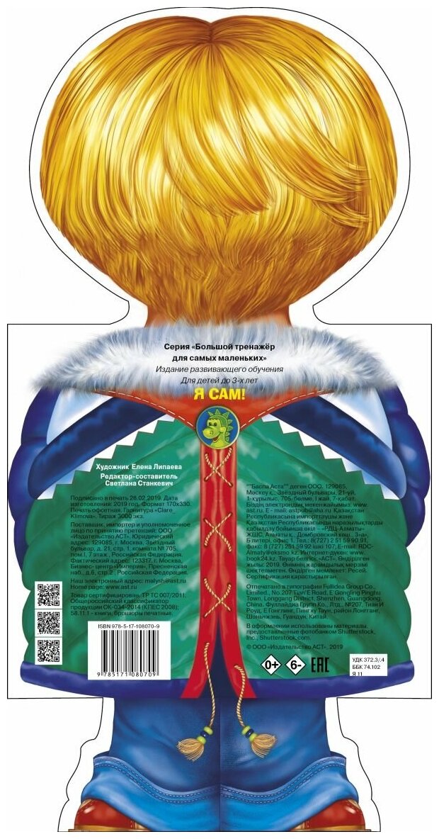 Одна из самых полезных и интересных развивающих книг на мой взгляд. Стоит своих денег. Сыну очень нравится завязывать веревочки, клеить липучки и тд. Хочу отметить очень яркие иллюстрации, удобно объяснять на примере картинок названия одежды, и когда их лучше надевать.