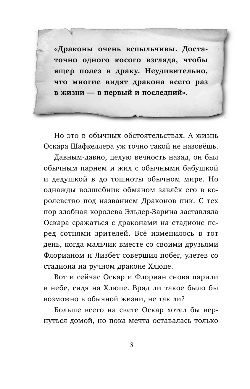 Подружиться с целой армией драконов - Оскар и во сне такое представить не мог! Но выяснилось, что летающие ящеры, которые не раз хотели сделать из мальчика жаркое, на деле оказались вовсе не такими уж и злыми. Они даже согласились помочь Оскару и его друзьям одолеть злую королеву Драконова пика, которая обманом заманивает детей в своё королевство. Их команде предстоит совершить далёкий поход, полный опасностей и приключений. Вот только секреты, которые их поджидают, перевернут их планы с ног на голову! Получится ли у друзей спасти волшебную страну от злодейки? И вернётся ли Оскар когда-нибудь домой?
