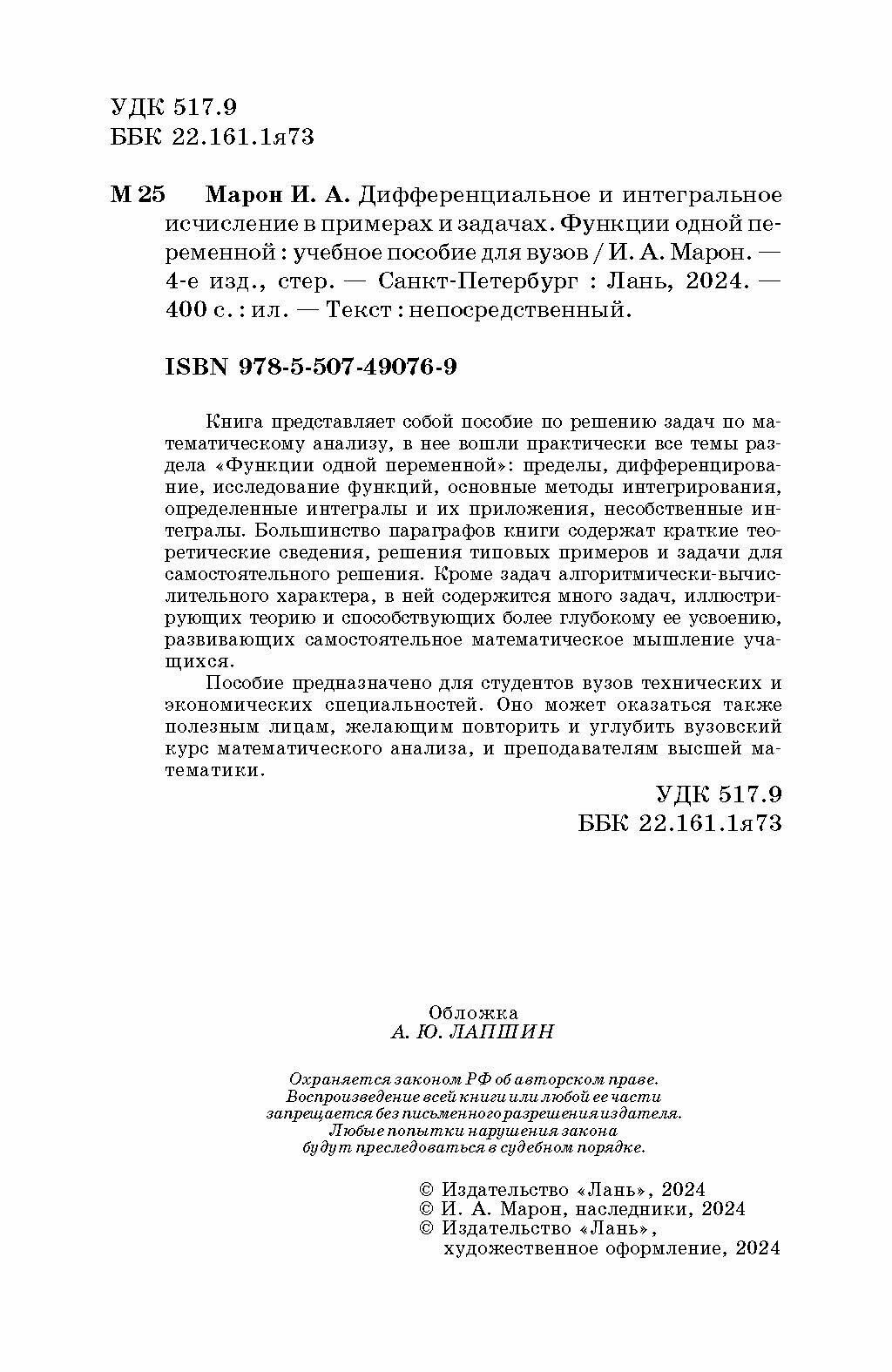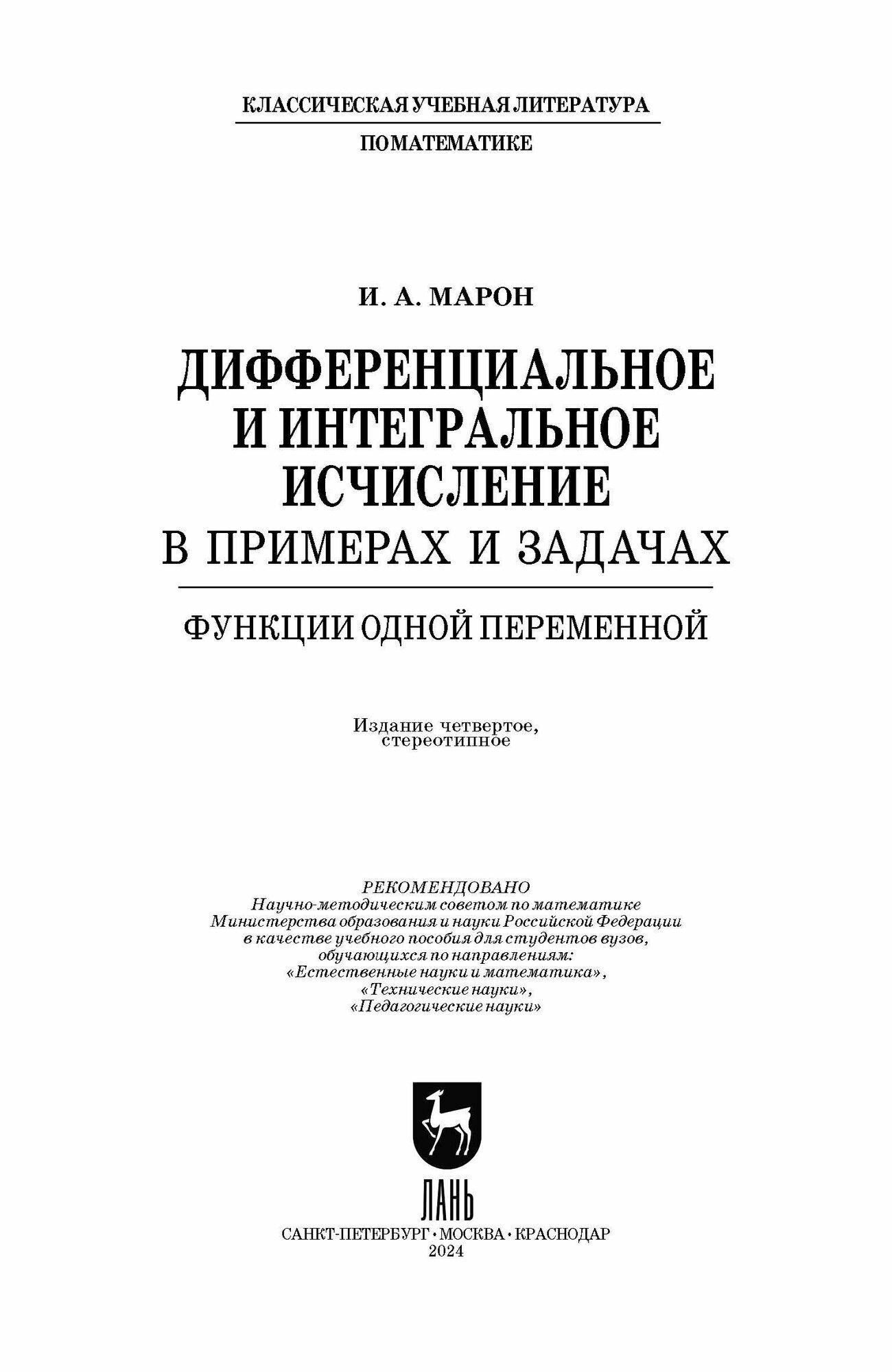 Дифференциальное и интегральное исчисление в примерах и задачах. Функции одной переменной: Учебное пособие. 3-е изд. (И. А. Марон); Издательство ЛАНЬ, 2008