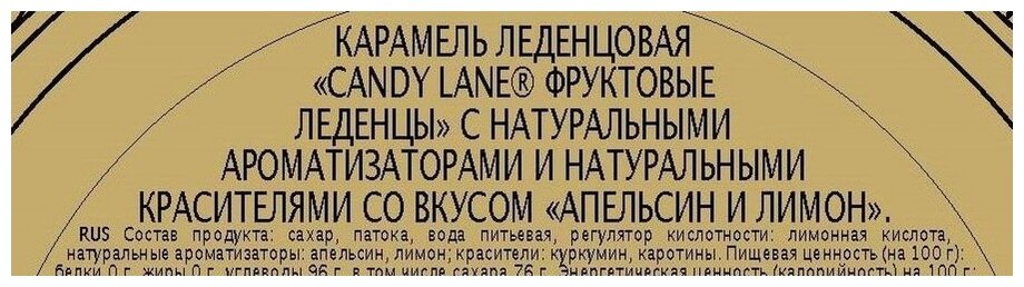 Карамель леденцовая "Candy Lane. Фруктовые леденцы" с натуральными ароматизаторами и натуральными красителями со вкусом "Апельсин и лимон".В ассортименте.