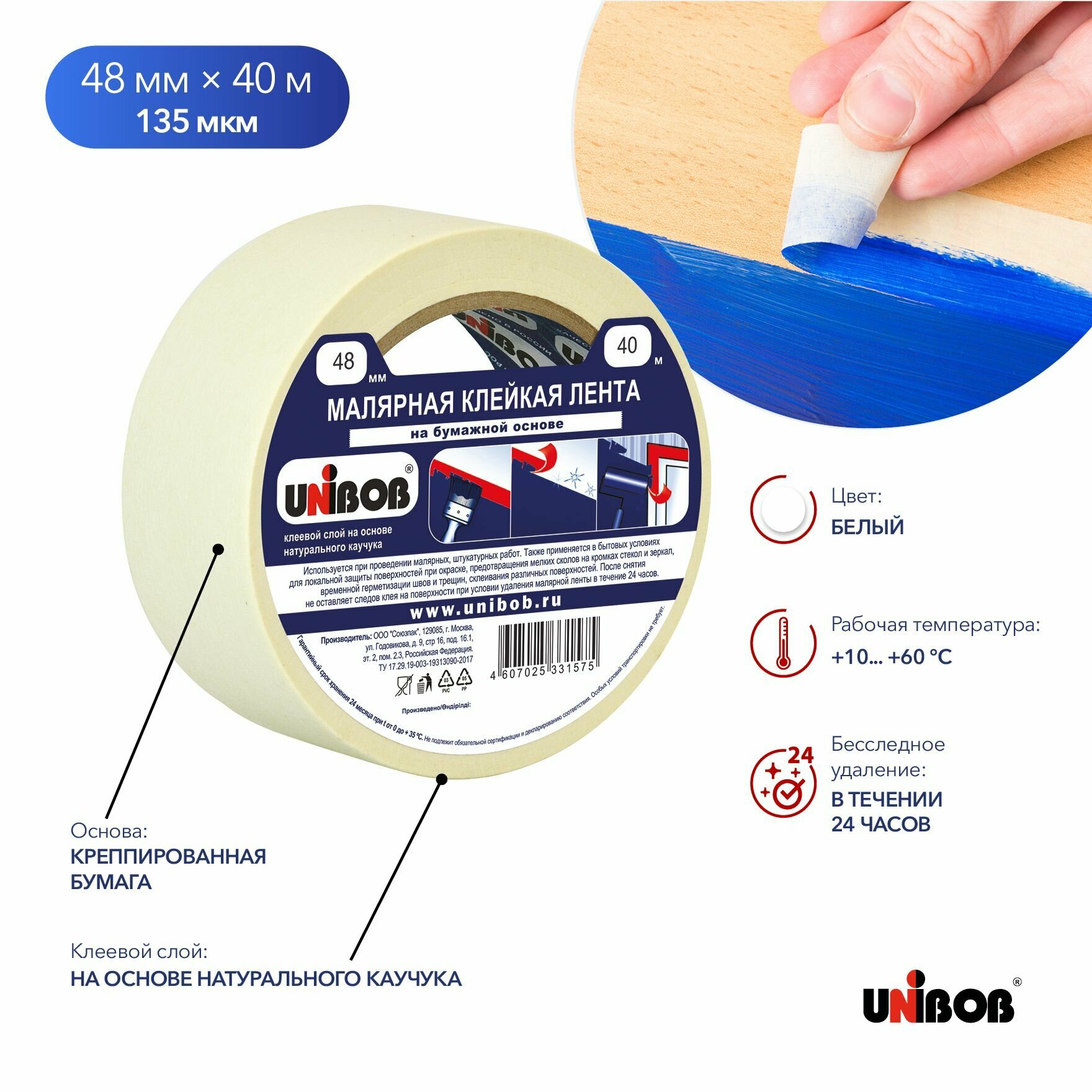 Лента клейкая Unibob малярная 48мм*40м 134846