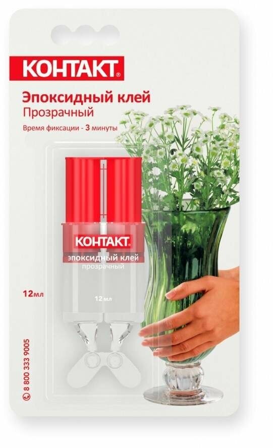 **Клей эпоксидный Контакт** обладает прозрачной гелеобразной консистенцией и подходит для склеивания фарфора, керамики, стекла, пластика, дерева, металла, камня. Не предназначен для изделий, контактирующих с пищей, и для работы с тефлоном, полиэтиленом, полипропиленом.