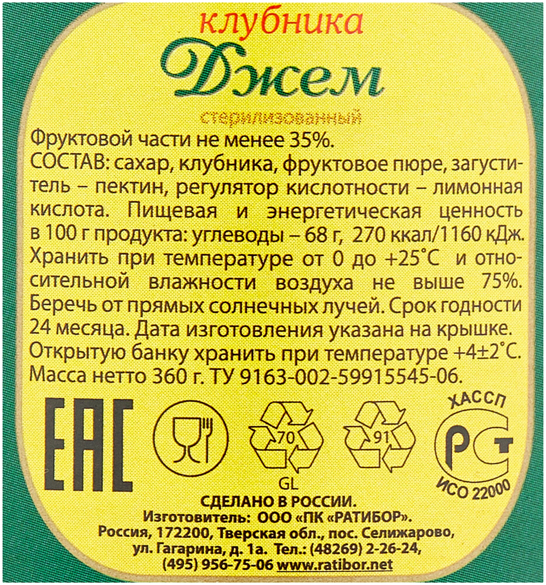 Сервис сравнения цен СкидкаГИД предлагает сравнить цены на товар «Джем Ратибор Клубника 360г»