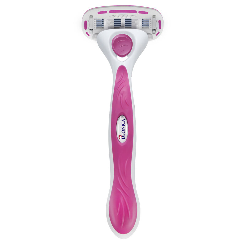 Технология 5-лезвийной бреющей поверхности женской безопасной бритвы Deonica снижает давление на кожу, обеспечивая максимальный комфорт во время бритья даже для самой чувствительной кожи. 5 тонких лезвий мирового класса произведены в США, они имеют двойное керамическое покрытие, что гарантирует более точное и чистое бритье.