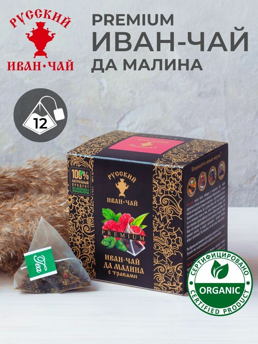 Напиток чайный Русский Иван-чай Premium да малина с травами 12 пак