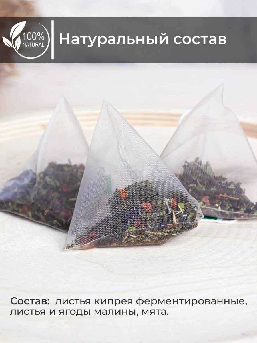 | Состав | Листья кипрея ферментированные, листья и ягоды малины, мята |