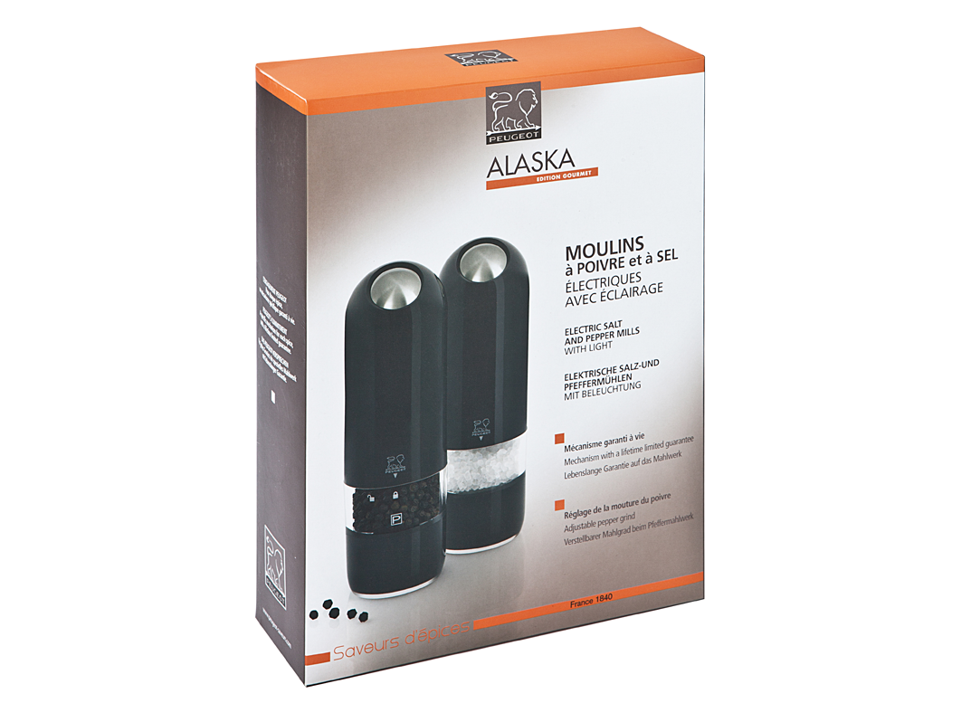 Набор из 2 мельниц для соли и перца Peugeot Alaska DUO 17 см электрические в подарочной коробка Франция