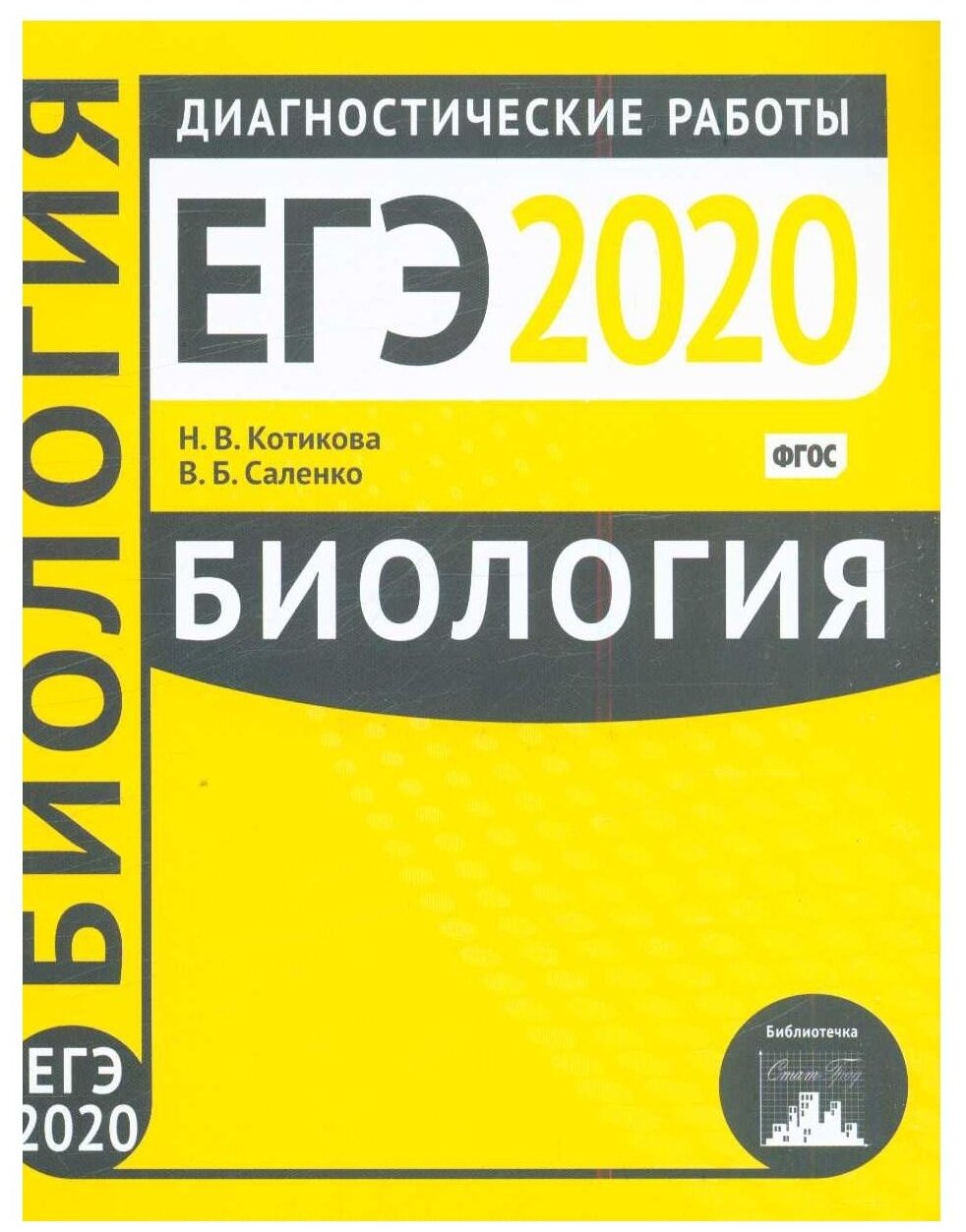 Биология. Подготовка к ЕГЭ в 2020 году. Диагностические работы. (Котикова Наталья Всеволодовна, Саленко Вениамин Борисович); МЦНМО, 2020