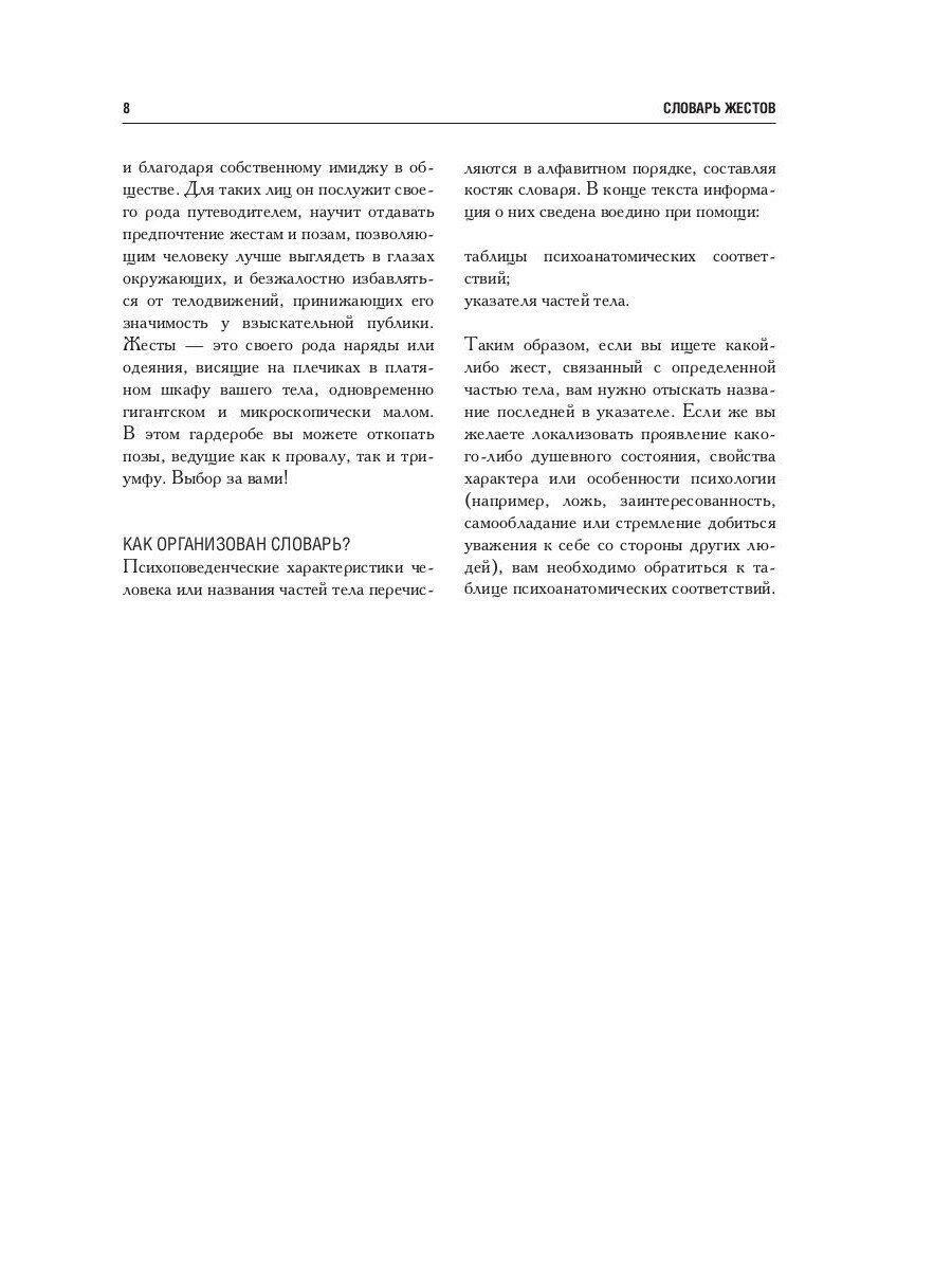 Если вы хотите изменить жизнь, нужно начать со своих поступков. Из этой уникальной книги вы узнаете, что может невольно уронить вас в глазах окружающих, а что позволит поднять вашу значимость. Вы увидите, какие ваши жесты и позы притягивают лиц противоположного пола. Эта книга поможет расшифровать более 1000 жестов других людей, и в конце концов вы научитесь разбираться, лгут вам или нет.