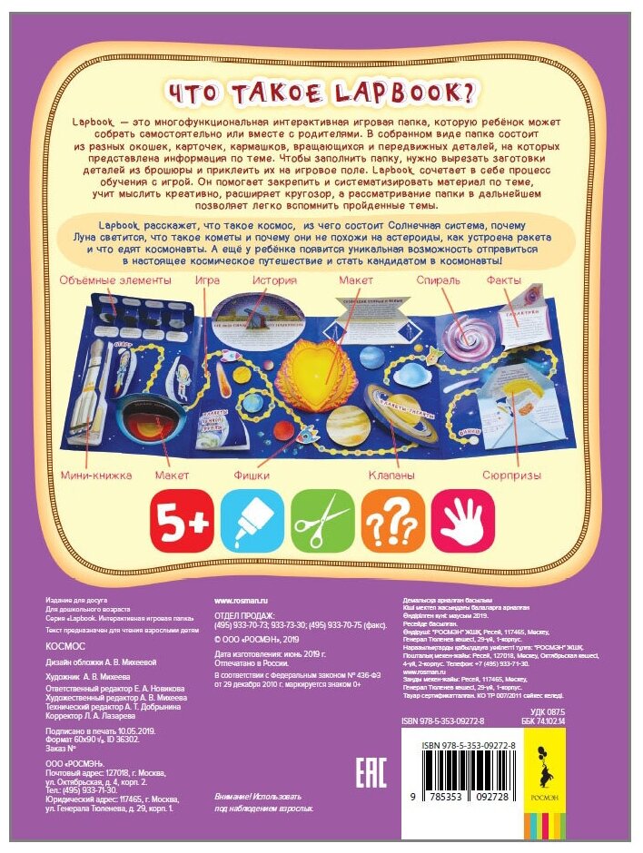 Lapbook. Космос. Интерактивная игровая папка (Михеева А. (иллюстратор), Новикова Е.А. (редактор)); РОСМЭН, 2019