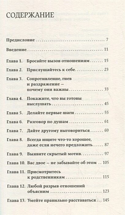 Илсе Санд анализирует причины разрыва отношений и предлагает простые приемы и упражнения, чтобы их вернуть или улучшить. Особое внимание уделяется ситуациям, когда прежние отношения невозможно возобновить по объективным причинам. Для таких случаев автор дает советы, как пережить боль расставания или утраты и научиться отпускать с легким сердцем.