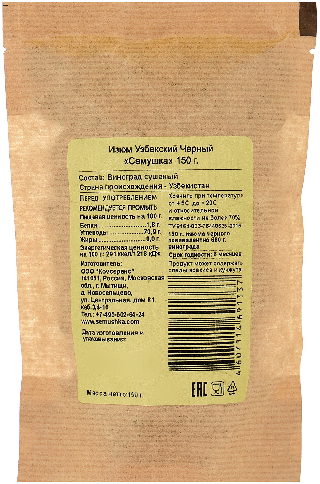 | Состав | виноград сушеный, консервант е220. |