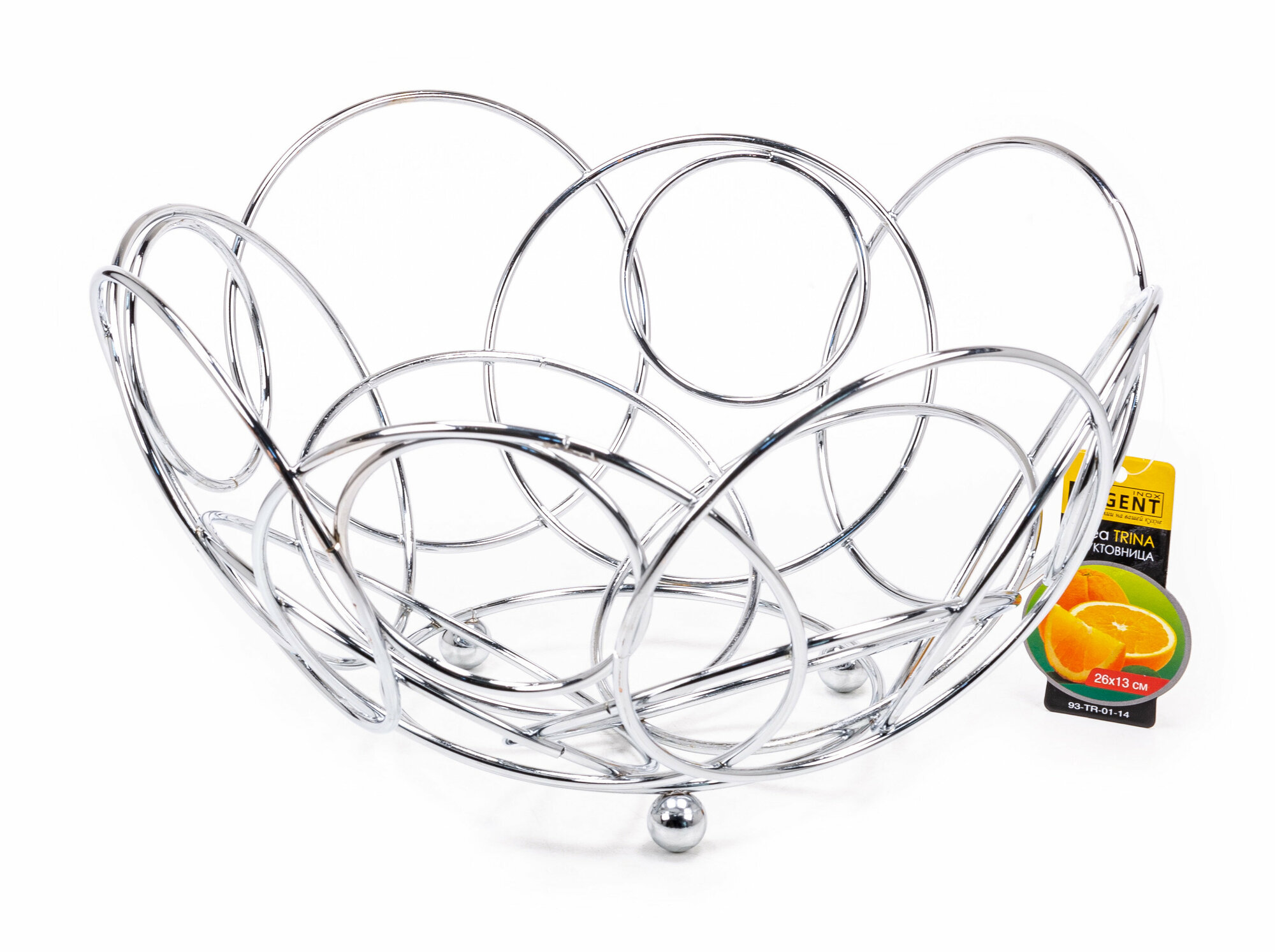 Современный дизайн фруктовницы "Trina", изготовленной из хромированной стали, идеально впишется в интерьер современной кухни. Выполнена в виде чаши, стенки которой состоят из переплетений металлических прутков. Фруктовница имеет ножки с металлическими шариками - для устойчивости.