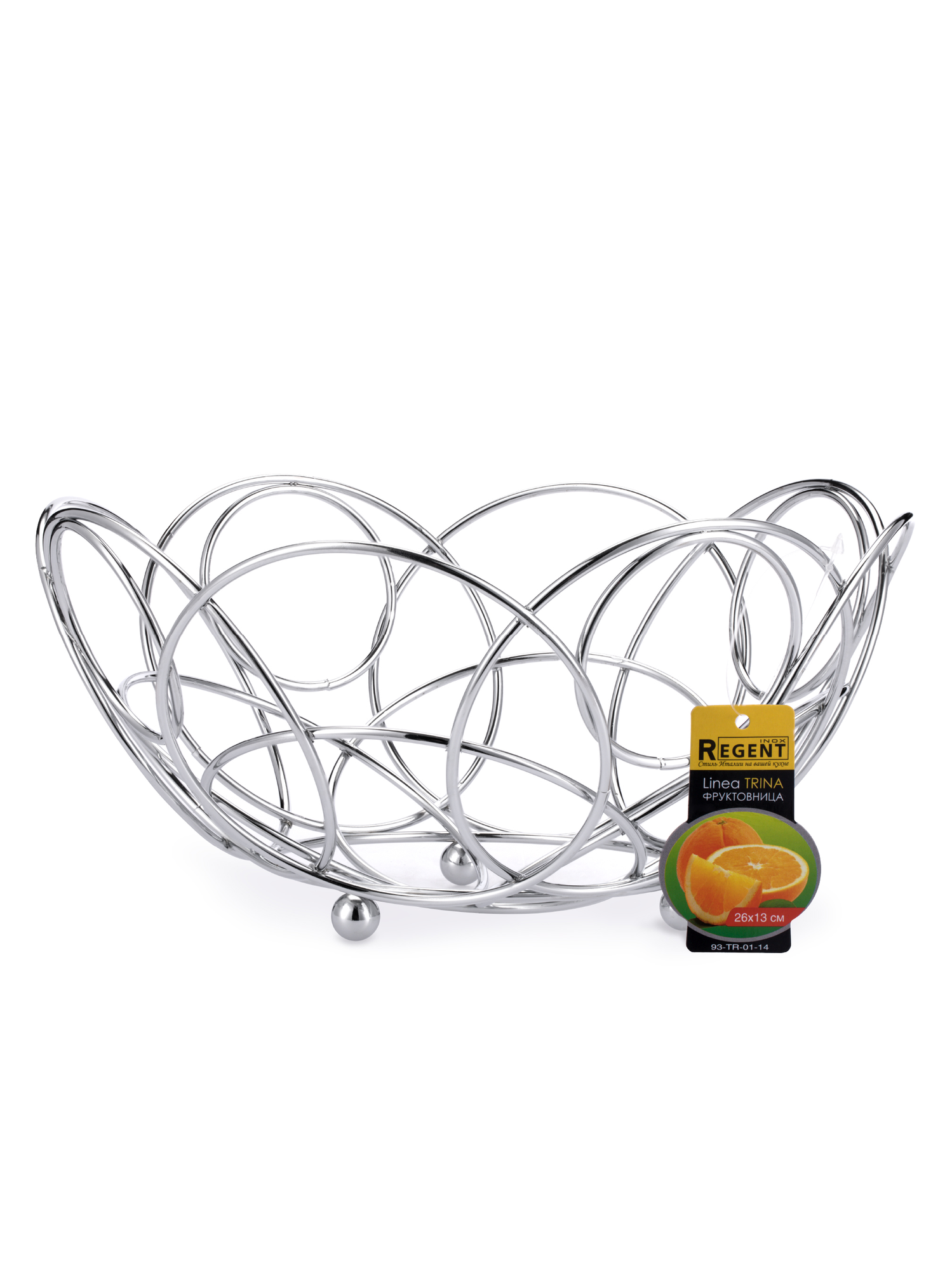 Современный дизайн фруктовницы ''Regent Inox Trina'', произведенной из стального прутка, превосходно впишется в интерьер любой кухни. Благодаря качественным материалам, использованным для создания этой посуды, она прослужит Вам долгие годы. Фрукты дольше сохраняют свою свежесть, поскольку имеют свободный доступ к воздуху. Порадуйте себя и своих близких столь приятным, а главное, полезным аксессуаром - фруктовницей. Эта оригинальная модель сделает десертную часть праздничного застолья более яркой, которая надолго запомнится Вашим гостям!