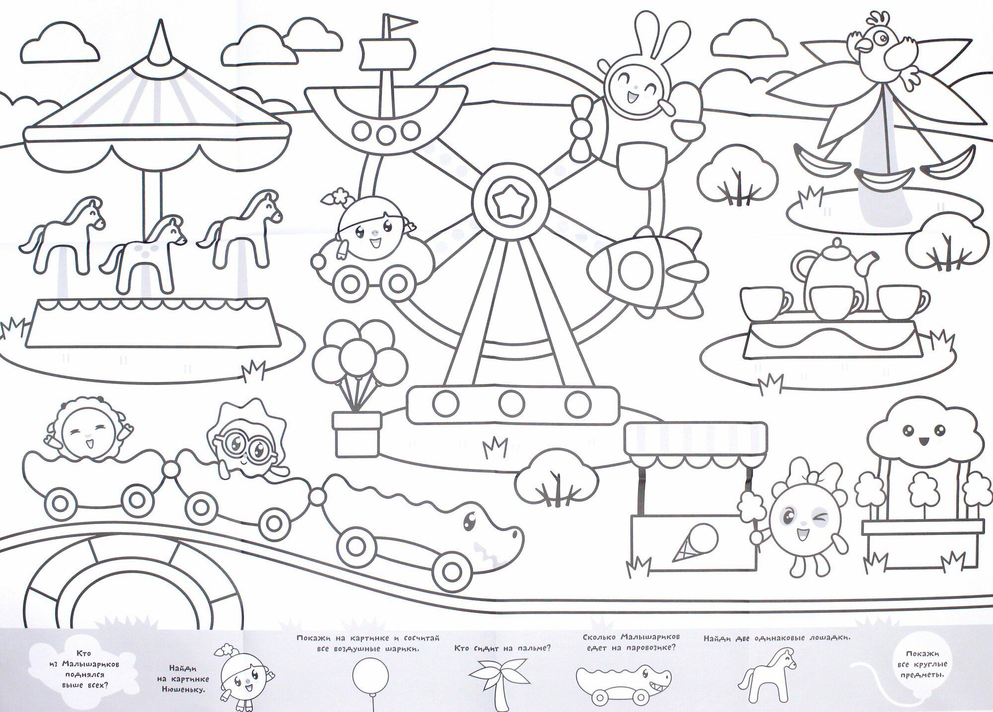 Развивающая книга ND Play Парк атракционов Малышарики. Очень большая раскраска 3+ (278722)