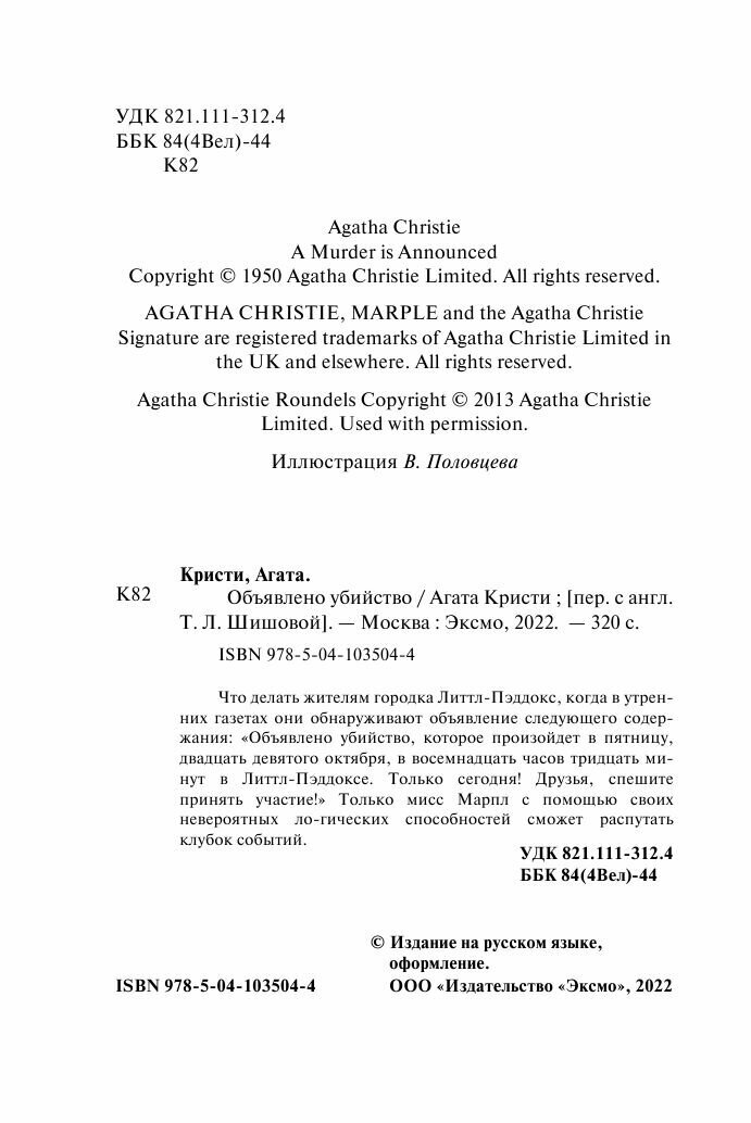 Книга: Объявлено убийство (Кристи Агата); Эксмо, Редакция 1, 2019