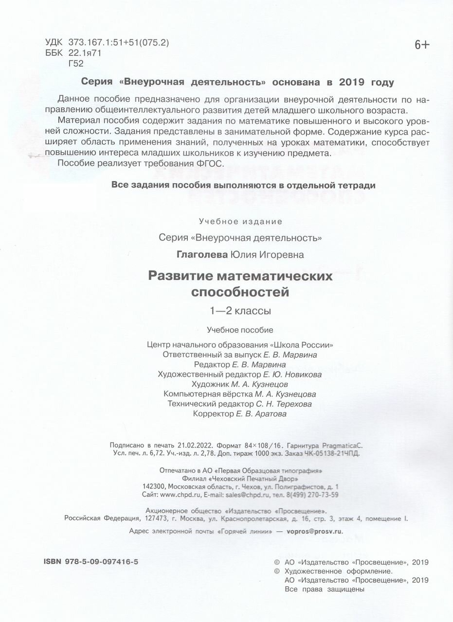 Развитие математических способностей. 1-2 классы. (Юлия Игоревна Глаголева); Просвещение, 2023