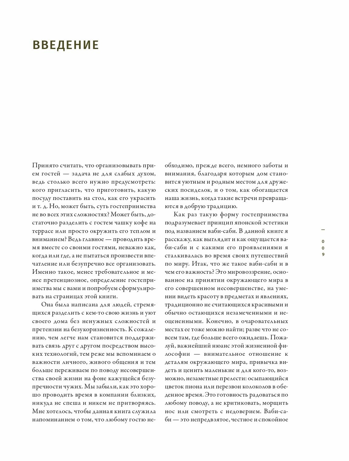 Книга о том, как хорошо проводить время в компании близких людей, никуда не спеша и никем не притворяясь, в настоящее время и с настоящими разговорами. Книга о том, как хорошо проводить время в компании близких людей, никуда не спеша и никем не притворяясь, в настоящее время и с настоящими разговорами. Принимать гостей по канонам японской эстетики ваби-саби - это значит разделить с друзьями чашку чая. Приготовить угощение, чтобы накормить, а не произвести впечатление. Поставить у входа корзину с удобными тапочками для гостей. Застелить стол старенькой, но любимой скатертью. Украсить его букетом из веток, собранных во время прогулки по лесу. Джули Пойнтер Адамс собрала целую коллекцию проявлений ваби-саби в разных уголках мира. Каждая глава посвящена одному из принципов ваби-саби и его отражениям в культуре одной страны: в Японии, Дании, в США (в частности, в Калифорнии), во Франции и в Италии. Вы увидите, как самые разные люди вплетают философию ваби-саби в свою повседневность.