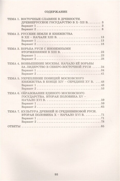 Задания объединены в темы, соответствующие основным разделам курса истории России 6 класса. По каждому разделу представлено два варианта заданий, форматы которых соответствуют применяемым в различных направлениях стандартизированной текущей диагностики и при подготовке к государственной итоговой аттестации.