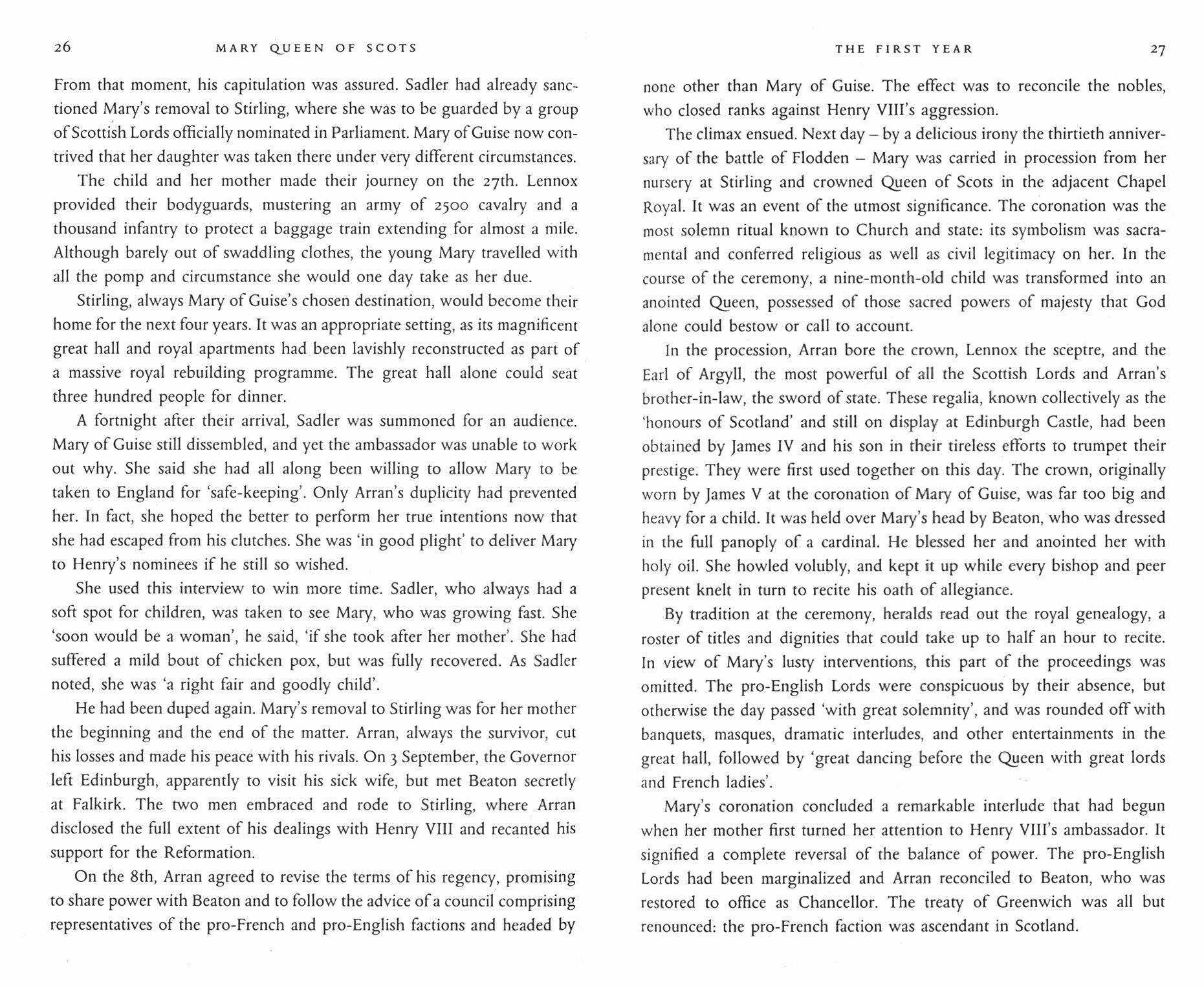 She was crowned Queen of Scotland at nine months of age, and Queen of France at sixteen years; at eighteen she ascended the throne and began ruling one of the most fractious courts in Europe, riven by religious conflict and personal lust for power. She rode out at the head of an army in both victory and defeat; saw her second husband assassinated, and married his murderer. At twenty-five she entered captivity at the hands of her rival queen, from which only death would release her.