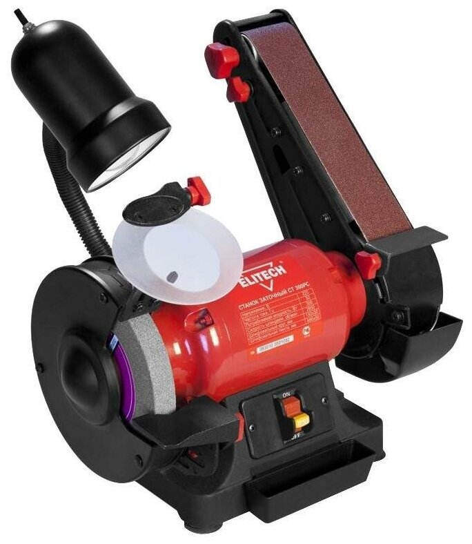 Садовый инструмент Elitech Компактный электрический точильный станок Elitech СТ 300РС оснащен абразивным кругом и шлифовальной лентой. Он предназначен для заточки, высококачественной правки, шлифовки или снятия заусенцев с различных материалов в бытовых условиях.