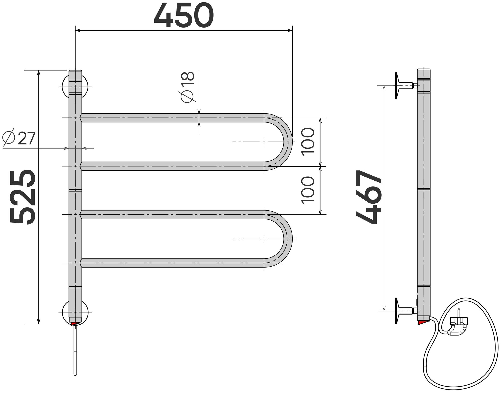 | ВКоробке | Полотенцесушитель - 1 шт. Комплект креплений - 1 шт. Комплект декоративных заглушек - 1 шт. Электрический кабель - 1 шт. Инструкция - 1 шт. |