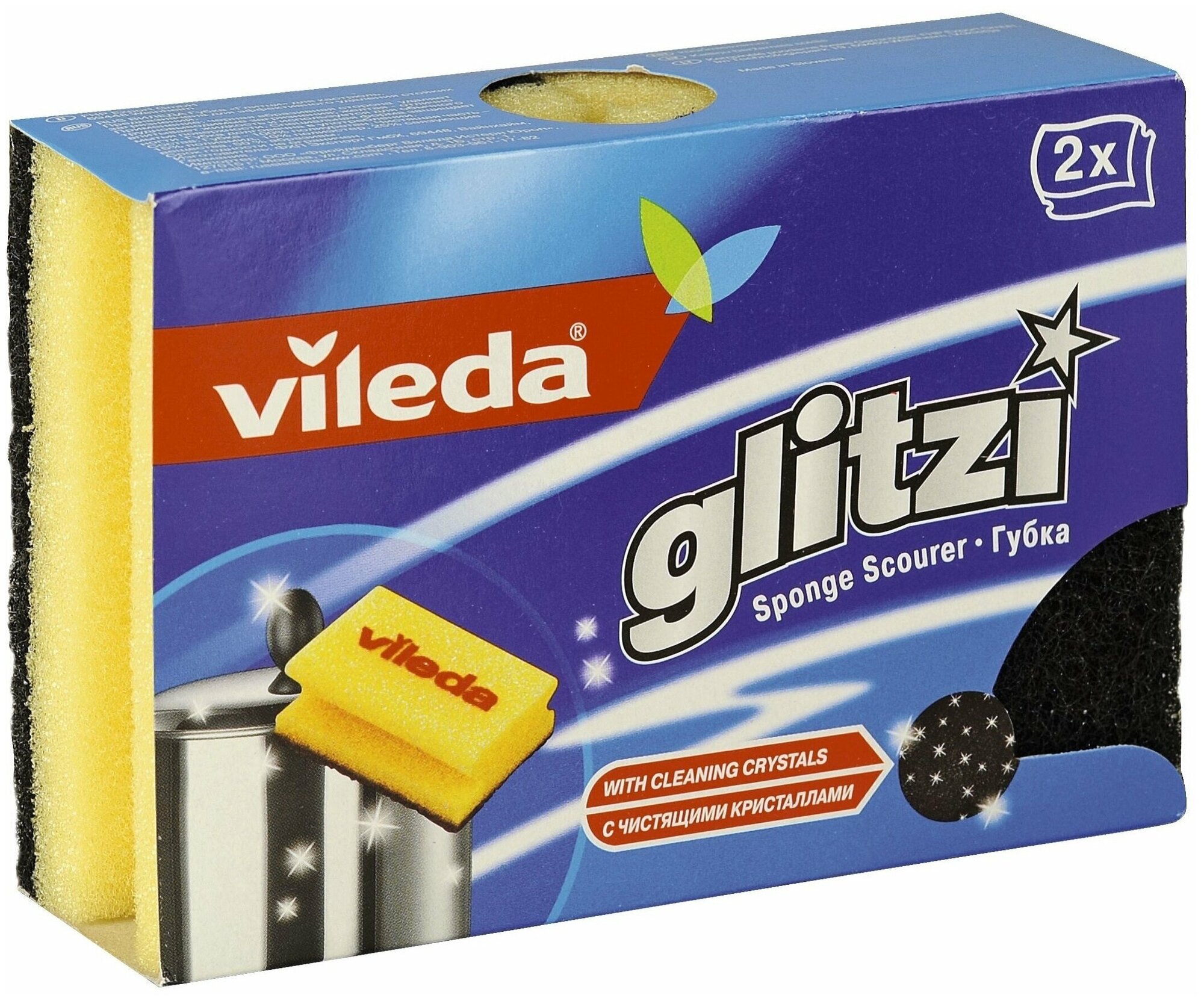 Для очищения посуды от любого типа загрязнения торговая марка Vileda создала уникальную губку Vileda Glitzi. Данному средству подвластны даже застарелые пятна и подсохшие остатки пищи.