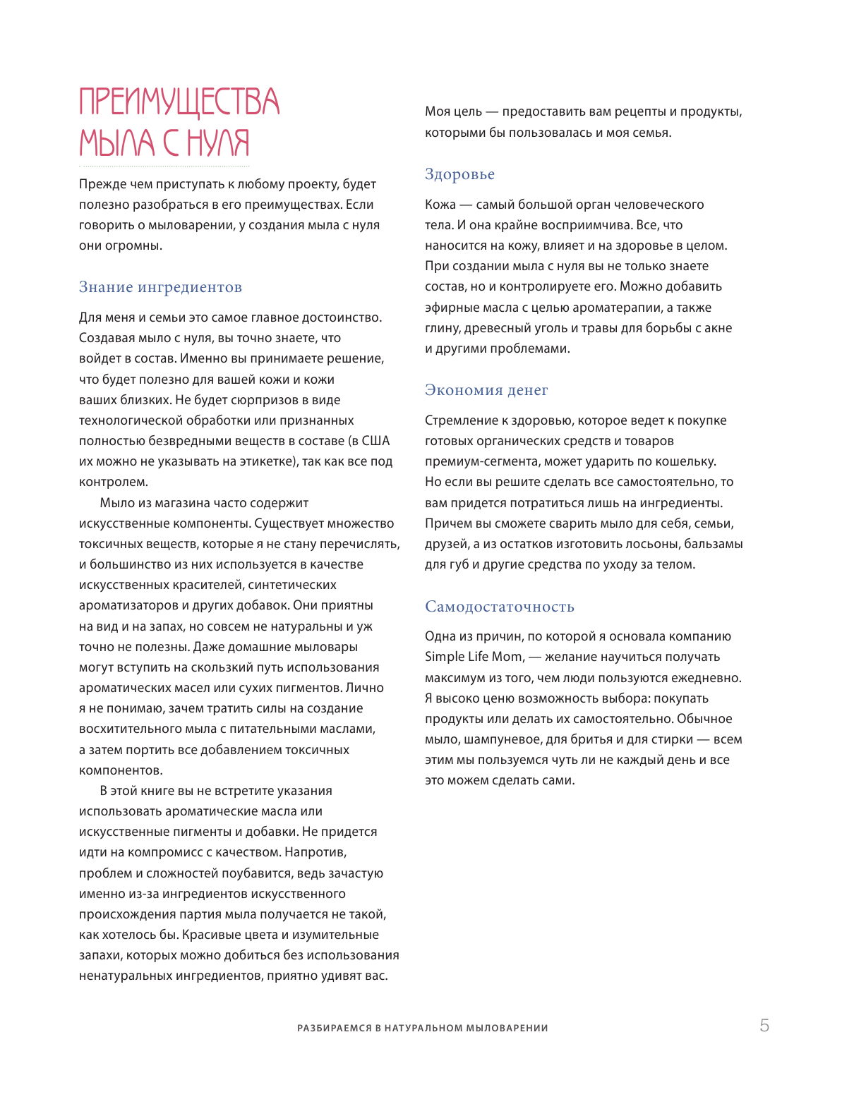 Все мы хотим для себя и своей семьи только лучшего, экологически чистого и полезного. Именно поэтому тема натуральной косметики ручной работы без вредных химических добавок, красителей и загустителей с каждым днем становится все актуальнее! Представляем вам по-настоящему революционную энциклопедию для всех, кого заботит здоровье своей семьи. Эта уникальная книга шаг за шагом проведет вас по пути самостоятельного создания экологически чистых мыл ручной работы холодным способом с использованием только полезных природных ингредиентов: эфирных масел, трав, специй, овощных и фруктовых пюре и многого другого, доступного абсолютно везде и всем. Автор подробно расскажет о том, что потребуется, чтобы начать создавать мыло, сориентирует в выборе сырья, научит оборудовать рабочее место, посвятит в тонкости и секреты составления ароматов, декорирования и упаковки. И главное - предложит 55 уникальных авторских рецептов мыла, которые сделают из вас настоящих мастеров! Вы не только научитесь изготавливать мыло по готовым рецептам, но и постигнете искусство создания своих собственных! Не случайно эта книга - бестселлер Amazon во многих странах мира!