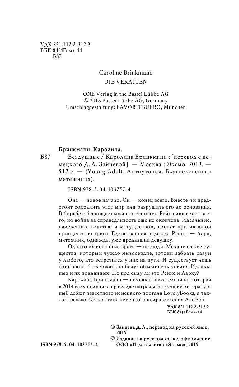 Книга: Бездушные (Бринкманн Каролина); ООО "Издательство "Эксмо", 2019