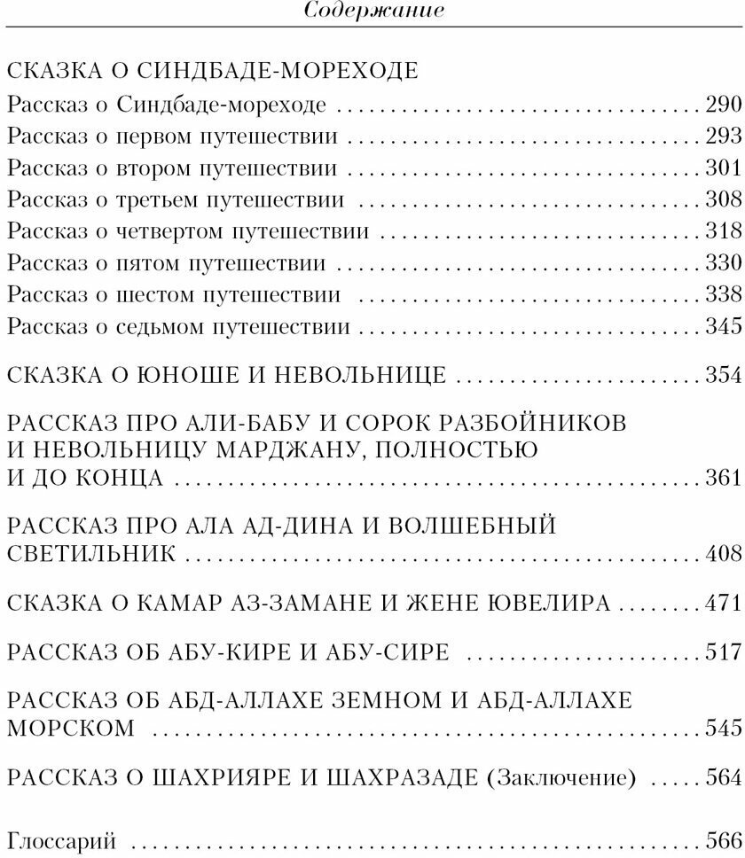 Книга в сокращении, но известные на весь мир сказки про Аладдина, Али-Бабу и сорок разбойников и Синдбада-морехода на месте. А вообще Аладдина звали Ала ад-Дин, и жил он "в одном городе из городов Китая".