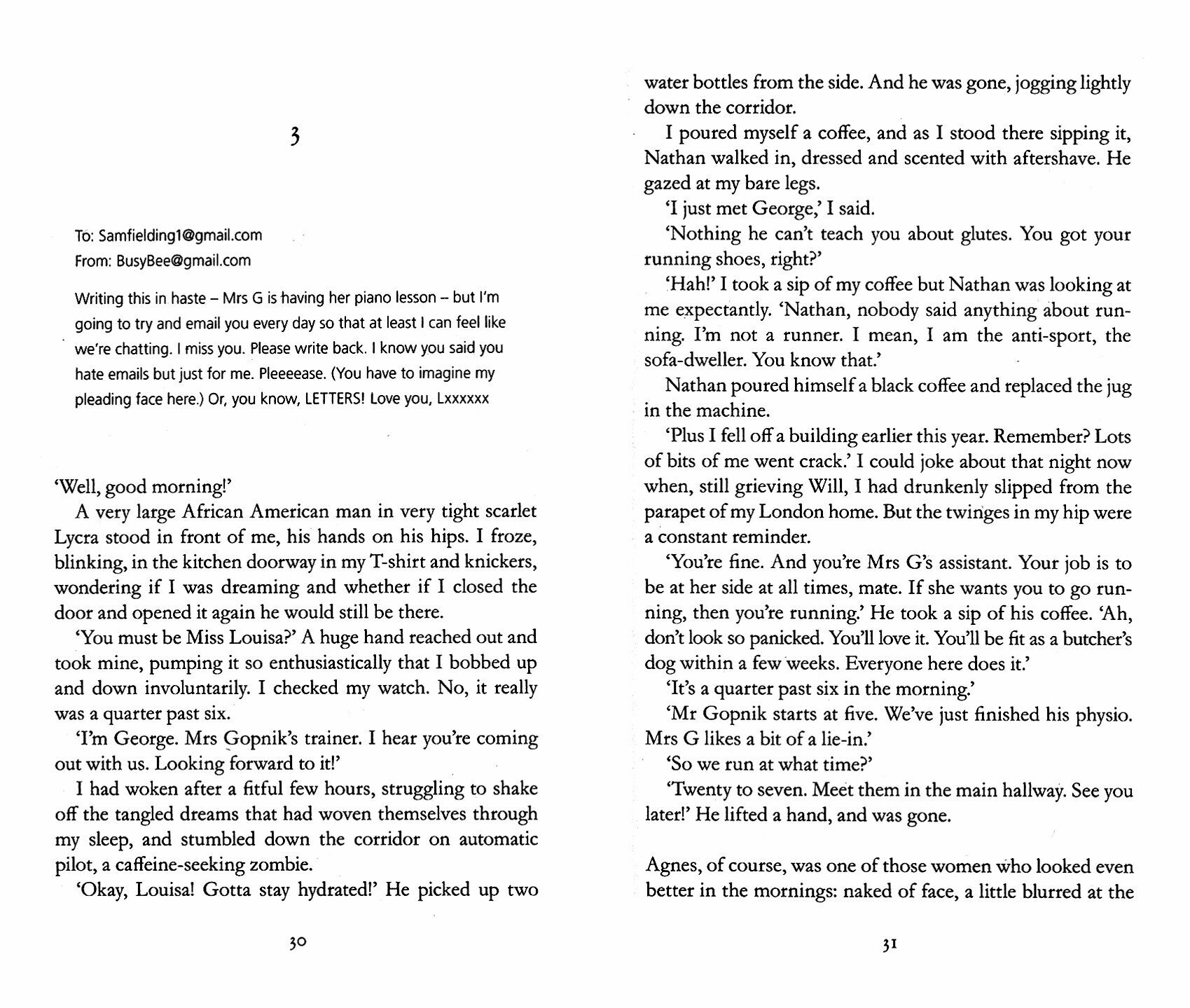 Lou Clark knows too many things... She knows how many miles lie between her new home in New York and her new boyfriend Sam in London. She knows her employer is a good man and she knows his wife is keeping a secret from him. What Lou doesn't know is she's about to meet someone who's going to turn her whole life upside down. Because Josh will remind her so much of a man she used to know that it'll hurt. Lou won't know what to do next, but she knows that whatever she chooses is going to change everything.