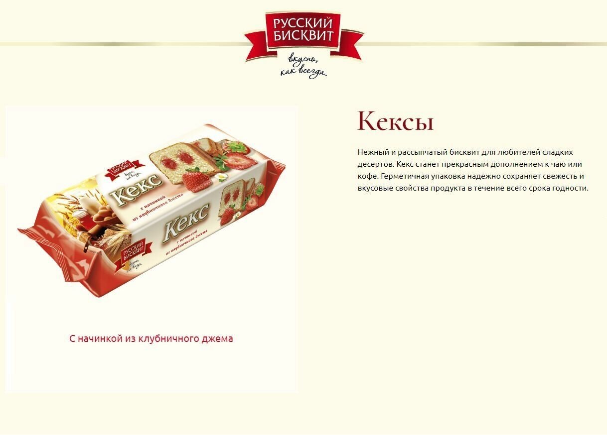 Кексы Русский бисквит — отличный выбор для уютного семейного или дружеского чаепития. Кондитерское изделие имеет нежную, тающую во рту текстуру и обладает приятным, в меру сладким вкусом. Герметичная упаковка надежно сохраняет свежесть и вкусовые свойства продукта в течение всего срока годности. Компания "Русский бисквит", созданная в 1997 году, за несколько лет успешной работы сумела выработать свою уникальную концепцию развития. Основная цель производителя: сочетание европейский технологий, современного оборудования, жесткого контроля качества на каждом этапе производства, отборного сырья и проверенных рецептур.