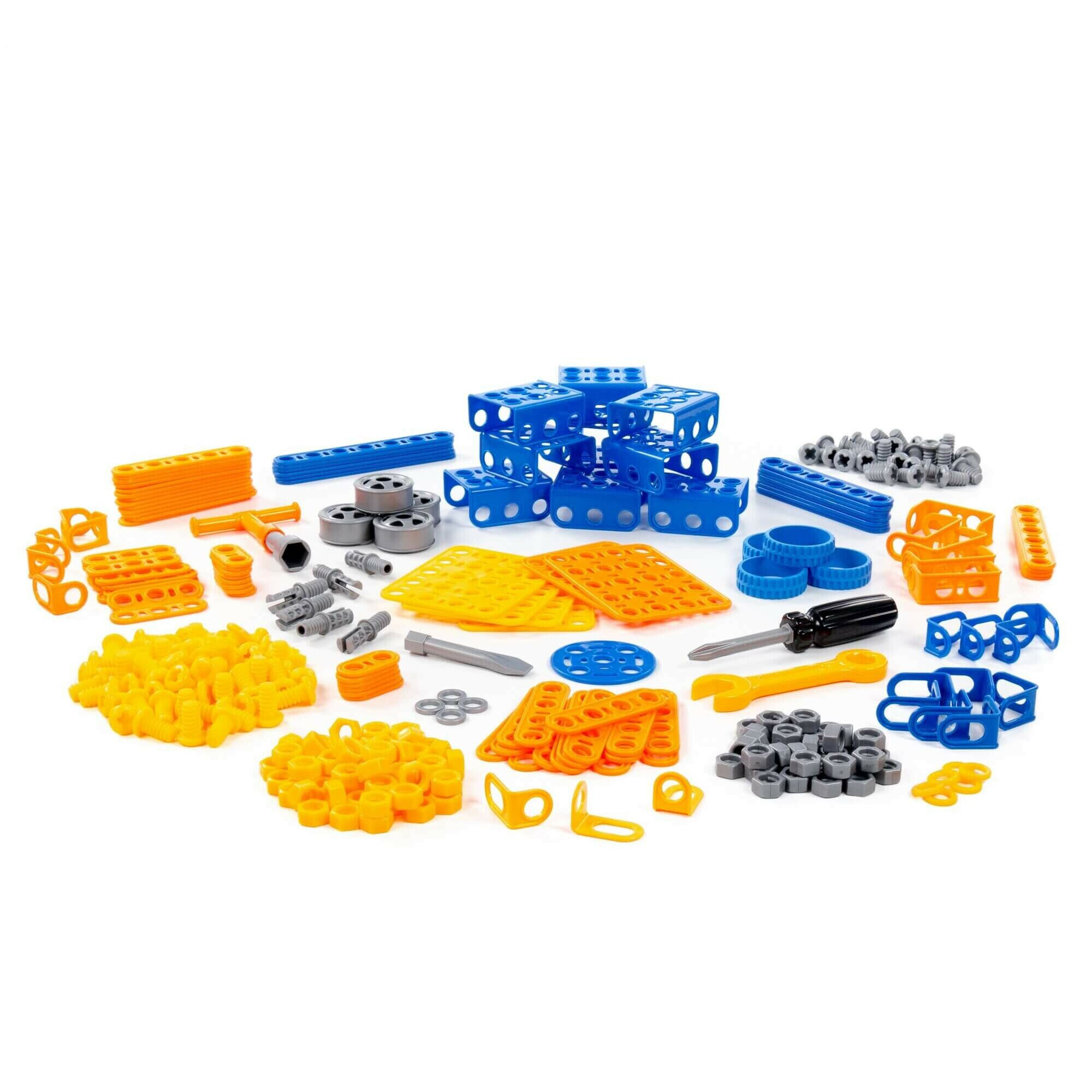 Набор из трехсот тридцати деталей разнообразных форм, предназначенный для самостоятельной сборки различных игрушек.