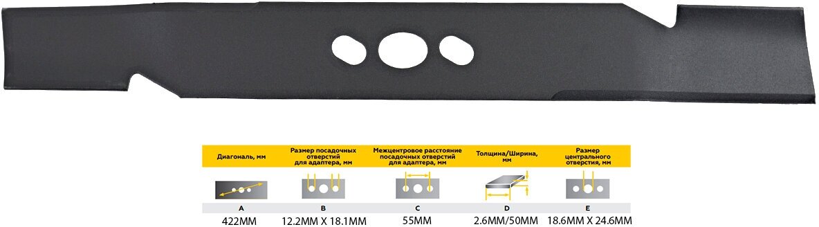 CHAMPION Нож для газонокосилки LM4215 (A-422B-12,2х18,1C-55D-2,6/50E-18,6х24,6) Ножи для газон, шт