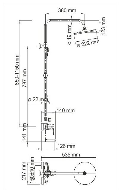 | Комплектация | смеситель, душевая лейка, шланг для душа, верхний душ, штанга, инструкция |