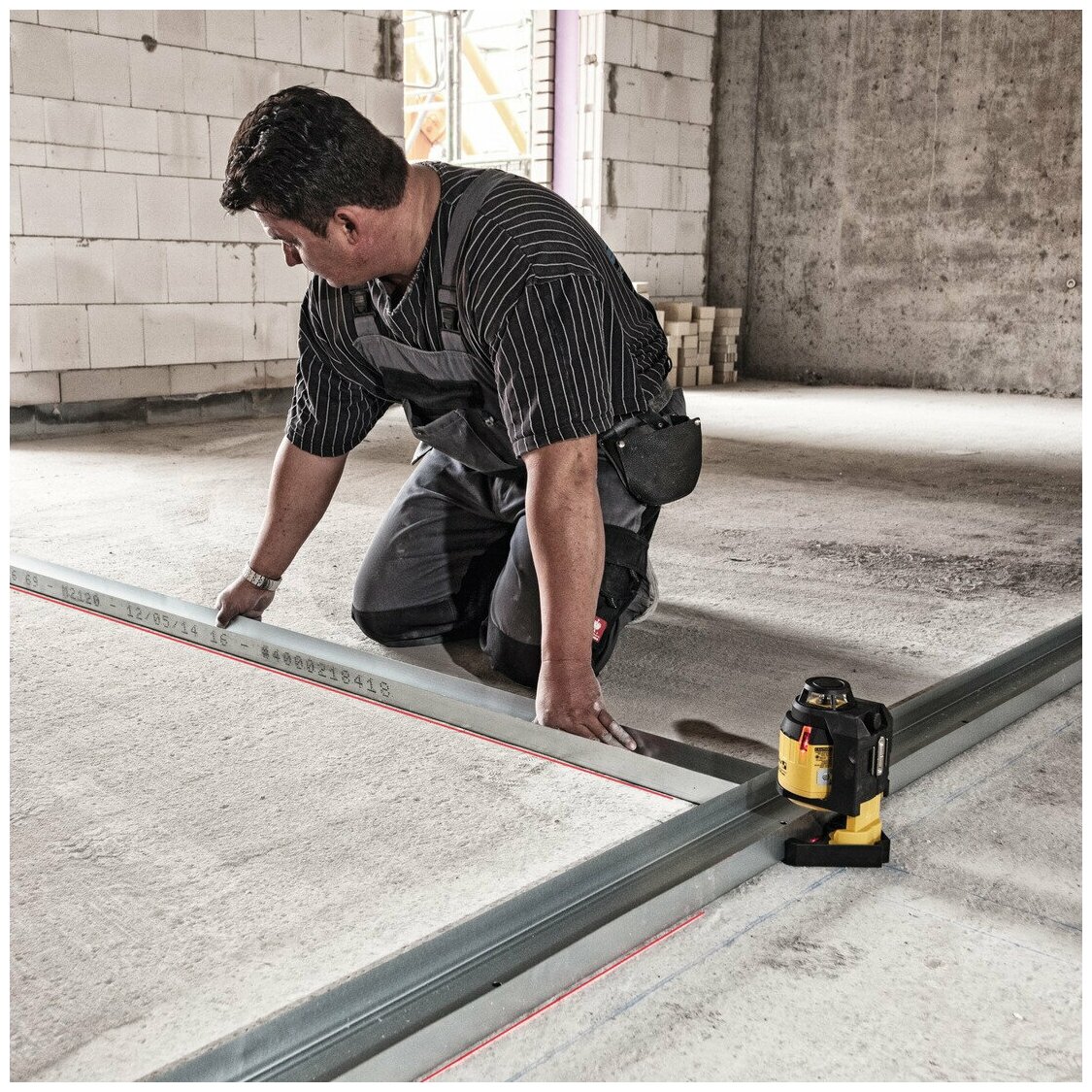 Мультилинейный лазерный прибор Stabila Арт.18702 Профессиональный лазерный прибор для внутренних отделочных работ • Самонивелирный мультилинейный лазерный прибор, обеспечивающий непрерывную горизонтальную линию на 360° (вокруг) для переноса значений высоты и две вертикальные линии, расположенные под углом 90°; с функцией отвеса вверх и вниз для точных разметочных работ. • Ручное выравнивание. Точное выравнивание вертикальных лазерных линий по цели с помощью колесика: лазерный прибор вращается над точкой отвеса, не меняя своего положения.• Яркие лазерные линии, видимые на расстоянии до 20 м. • Компактный поворотный корпус с выдвижной ножкой для регулировки по высоте при работе на U-образных металлических профилях для сухой штукатурки. • Импульсно-модулированные лазерные линии, позволяющие работать с ресивером линейных лазерных лучей STABILA. • Быстрое самонивелирование благодаря маятниковой технологии. • Удобное переключение между функциями благодаря однокнопочному управлению.• Возможность установить прибор на полу, штативе (резьба 5/8.), металлических предметах. • Ударопоглощающий кожух Softgrip STABILA. • Прочная головка корпуса из алюминия. • Степень защиты IP 54. Применение • Отделочные работы, например разметка, установка межкомнатных перегородок и подвеска потолков • Электромонтажные работы, например перенос высоты, горизонтальное и вертикальное выравнивание розеток, выключателей и кабельных каналов • Облицовочные работы, например создание кухонного фартука, выравнивание и укладка плитки • Установочные работы, например выравнивание трубных хомутов относительно друг друга по вертикали и горизонтали, быстрое позиционирование и монтаж линий и труб отопления Комплектация: 1. Мультилинейный лазерный прибор ; 2. поисковый экран; 3. очки для лучшего видения лазерных лучей; 4. настенный кронштейн; 5. 4 батареи AA; 6. чемодан для переноски.