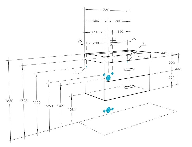 Стильная лаконичная модель, укомплектованная прямоугольной керамической раковиной с широкой удобной чашей. В тумбе имеются два ящика, изготовленные из декоративной влагостойкой ДСП. Нижний ящик тумбы – широкий и вместительный – предназначен для крупных предметов, а в верхнем имеется специальная организация пространства, позволяющая хранить мелкие вещи. Надежные металлические направляющие, рассчитанные на среднюю оптимальную нагрузку 25 кг, устанавливаются на мебельный ящик посредством надвижного монтажа при помощи специальных креплений. Помимо стандартного подключения водоснабжения и канализации из стены предусмотрена возможность подключения снизу – в нижней панели тумбы и за полкой для труб специально оставлено место.