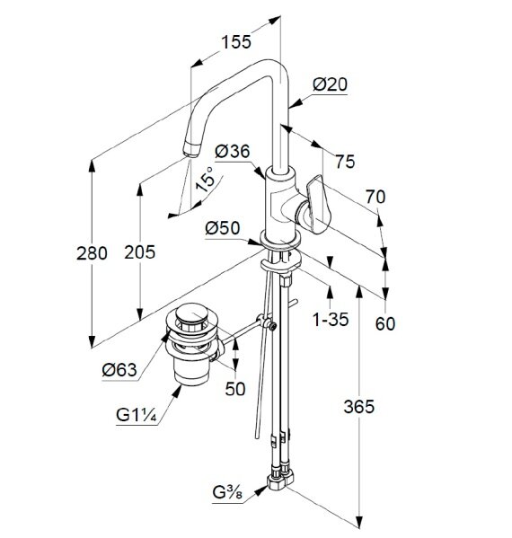 | Дополнительная информация | донный клапан G 1 1/4 |